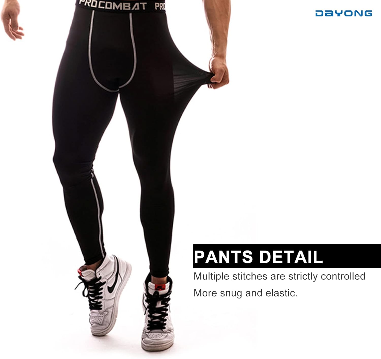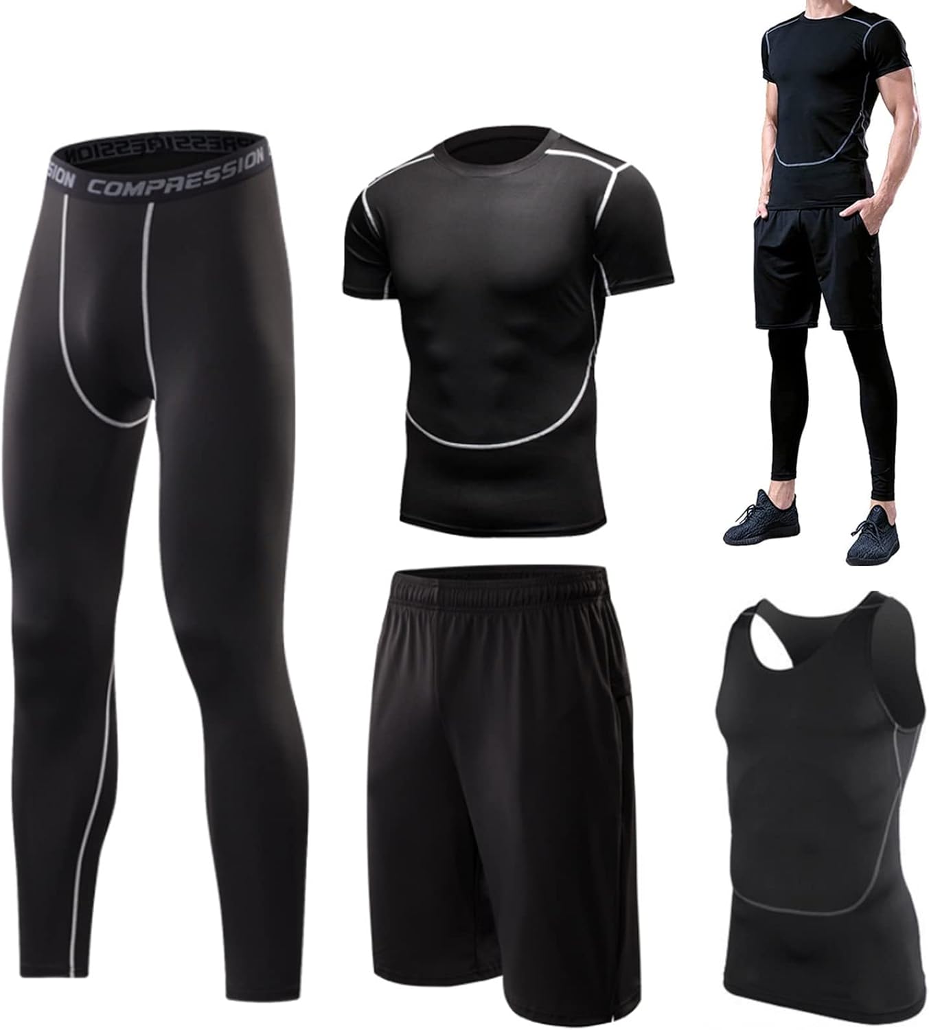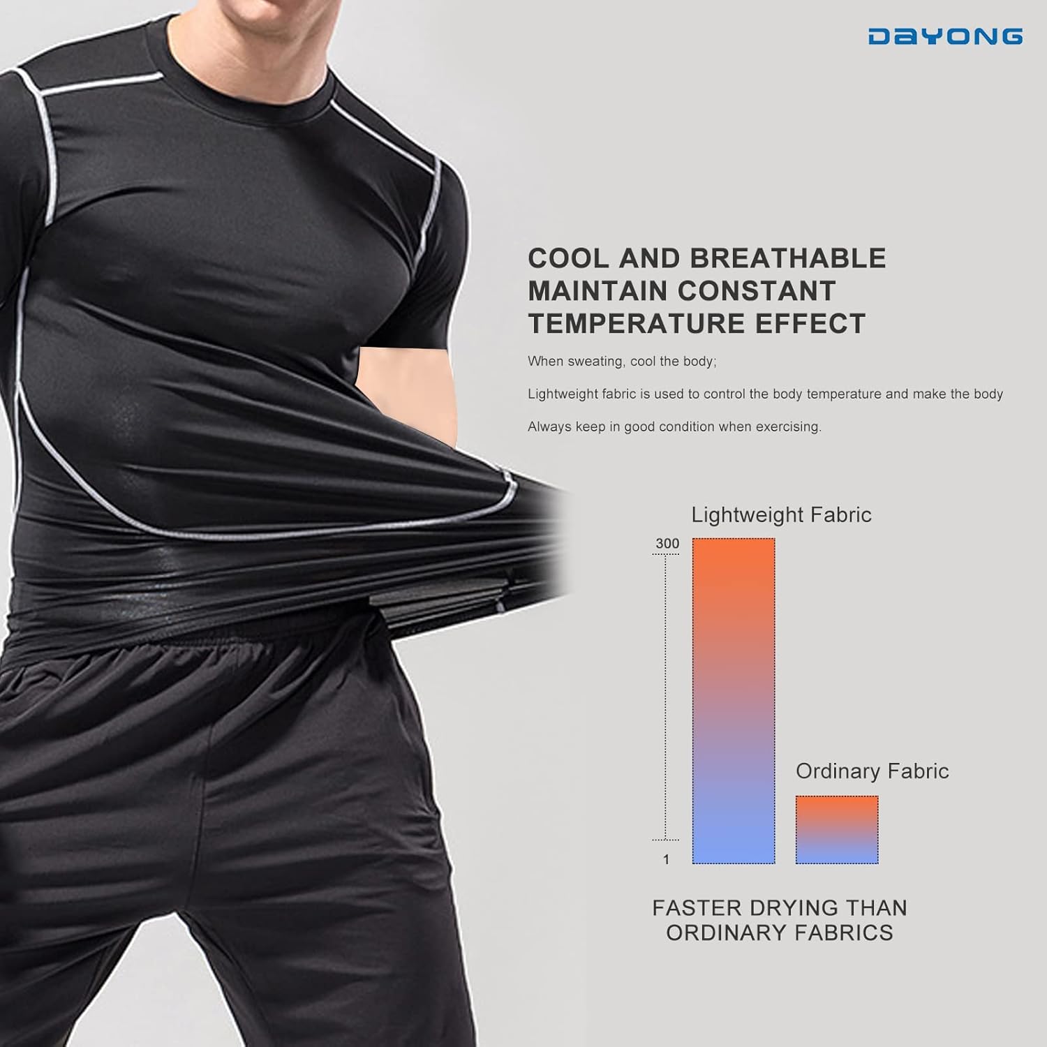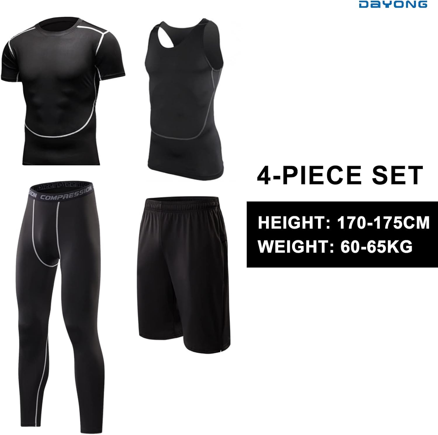 DAYONG 4Pcs Men's Workout Compression Sets,T Shirts Vest Athletic Shorts Long Pant Set Gym Clothing Mens Workout for Training,Running,Basketball,Yoga,Cycling,Gym Exercise,Almost All Sports