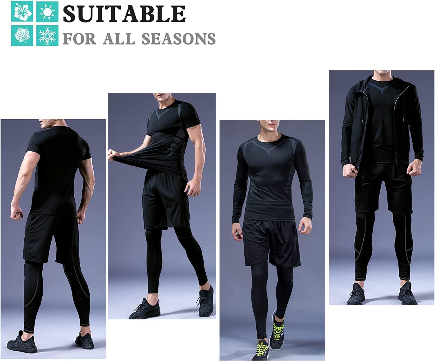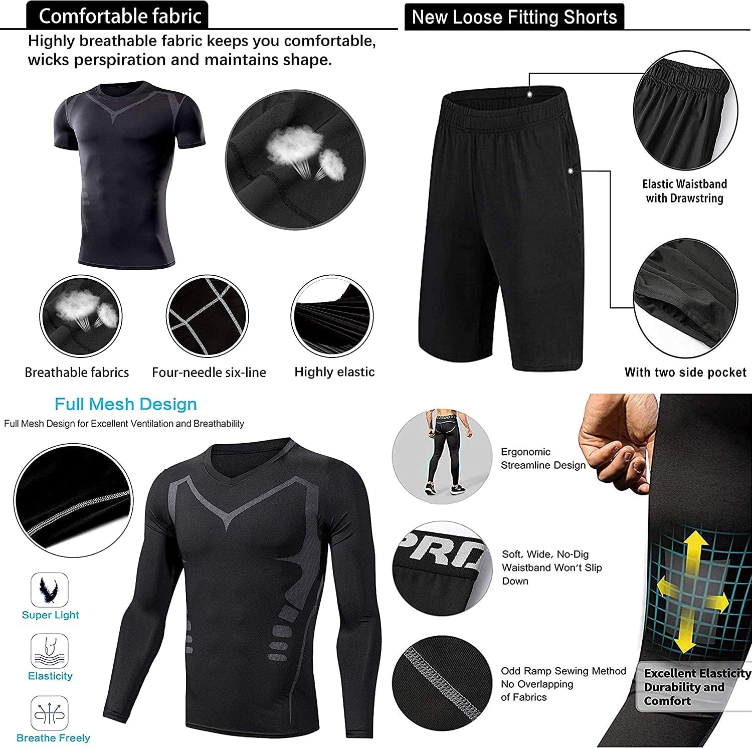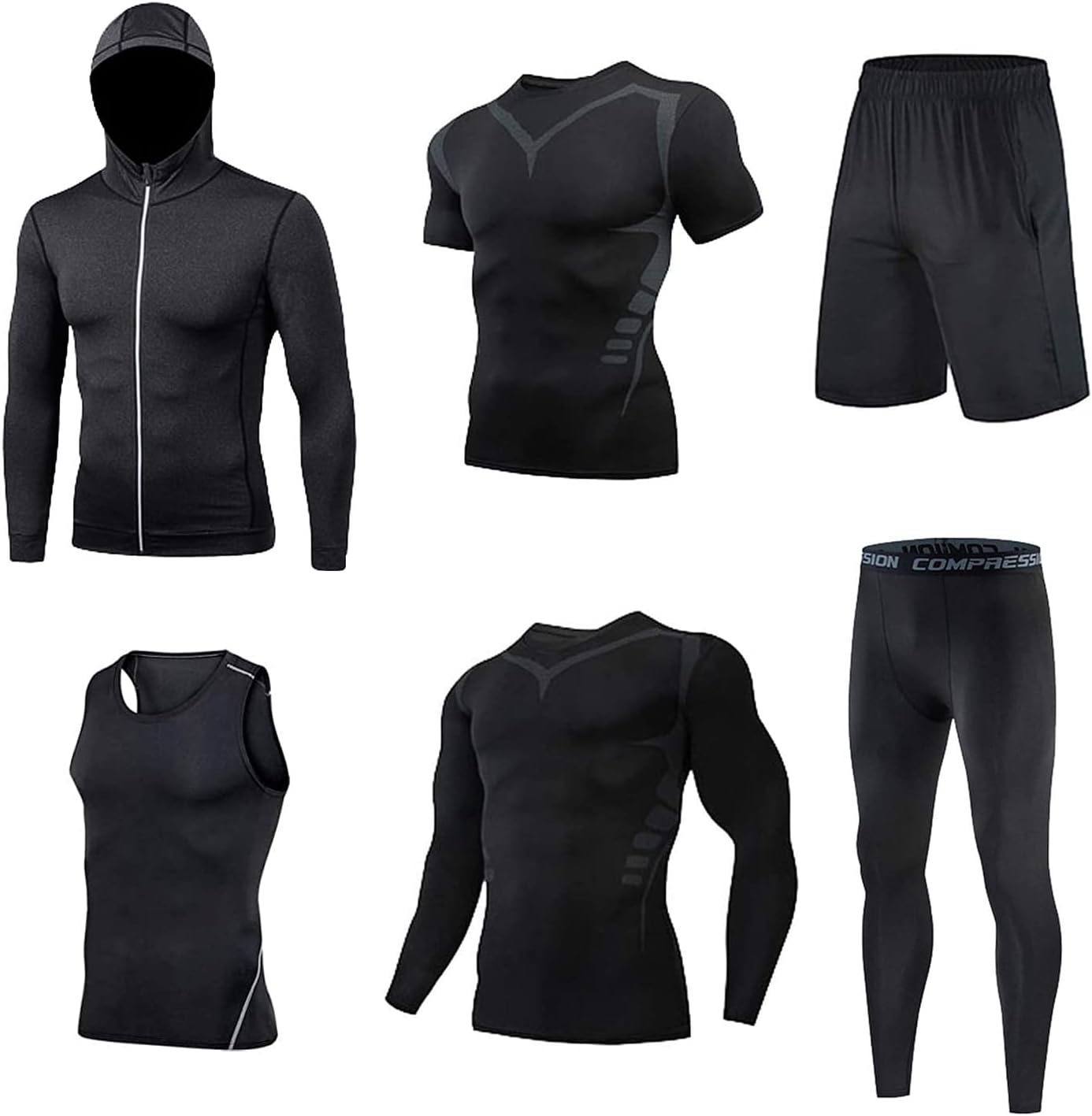 - Ultra-light weight smooth comfort fitting 6in 1 set. Short&Long Sleeve Compression T Shirt + running shorts + Compression Leggings + Hoodies Jackets + Waistcoat