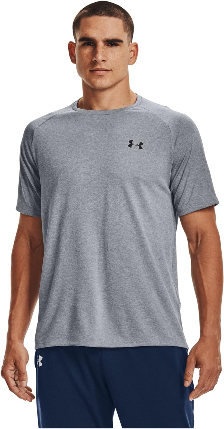 - Material & Fit – Under Armour Tech 2.0 short-sleeve tee, short-sleeved fitness clothing for men. Material: 100% polyester. Fit: Loose.