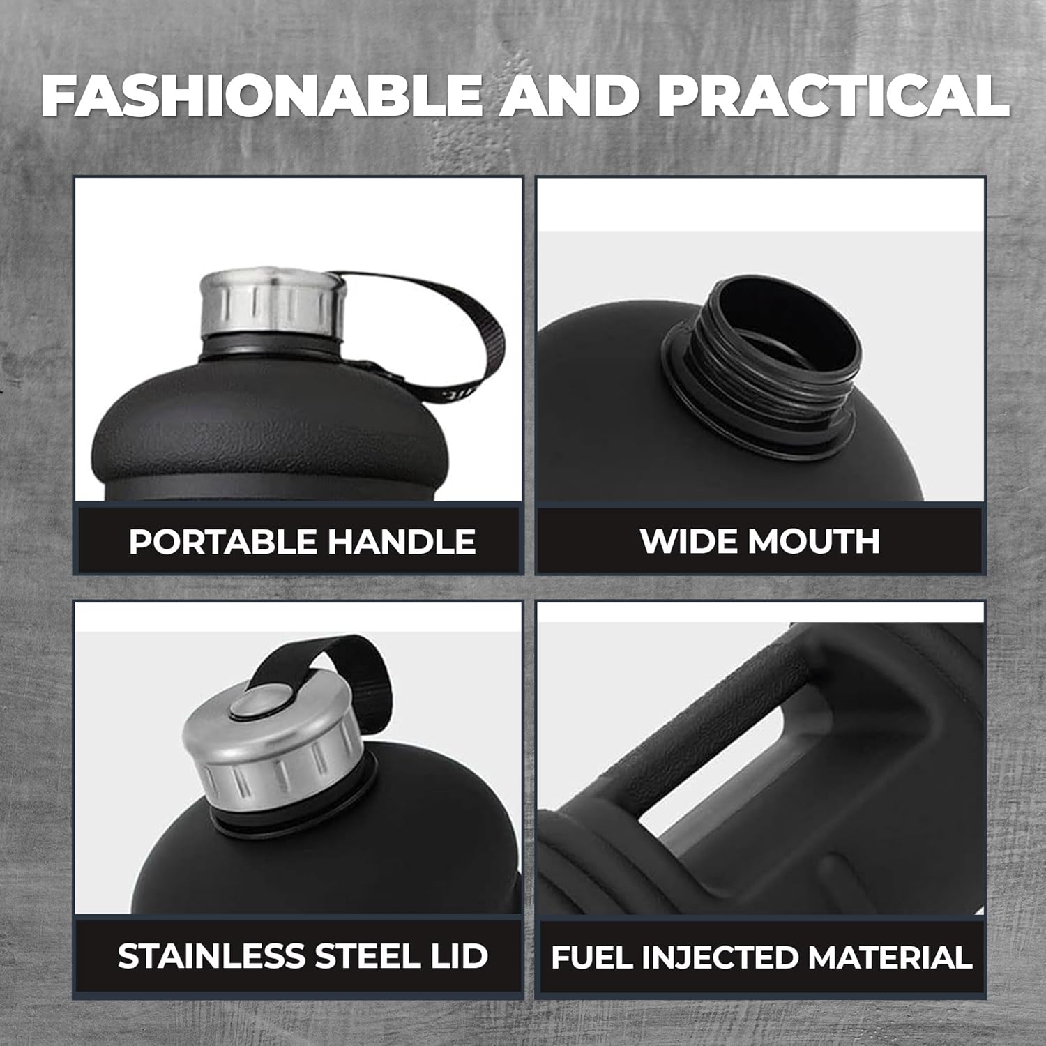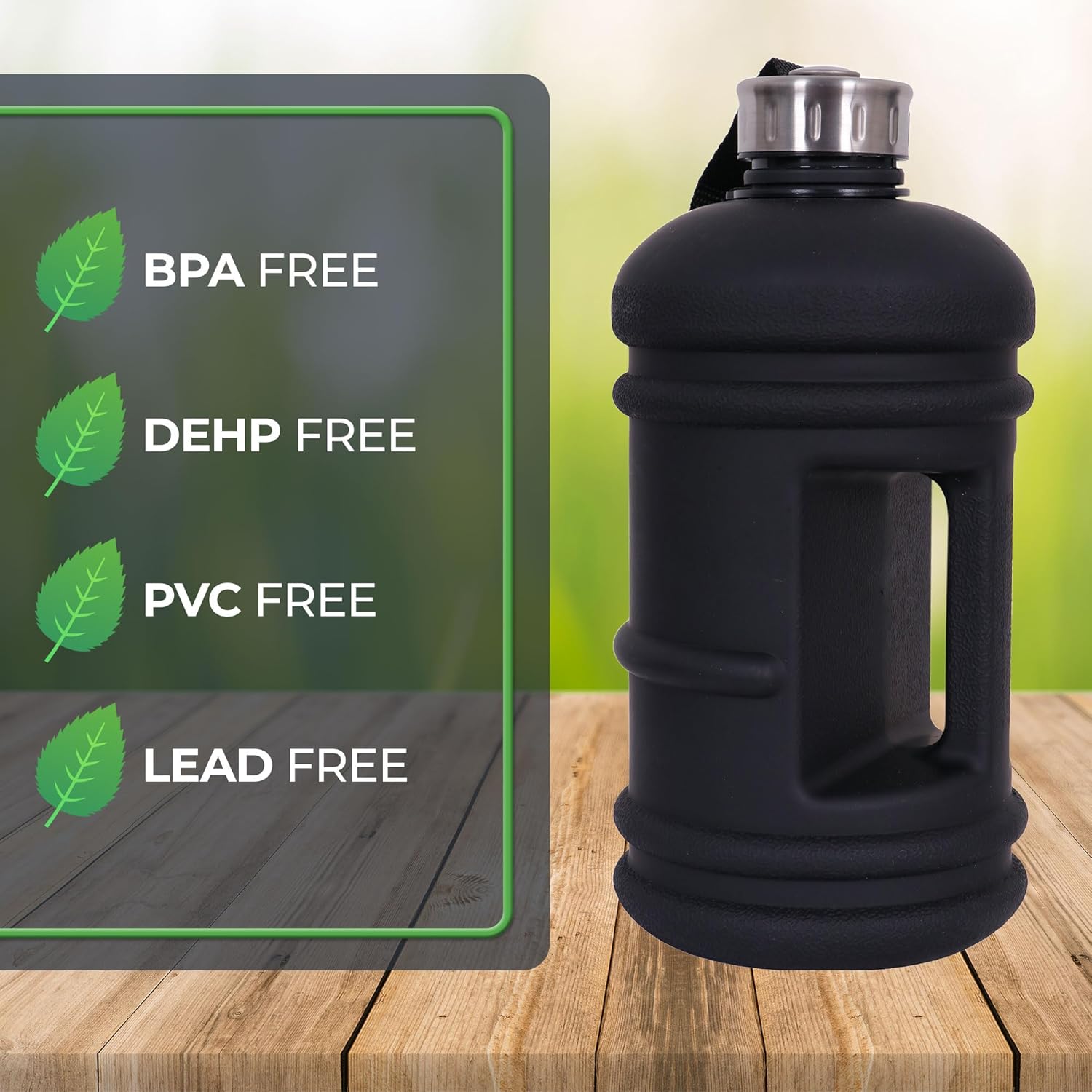 STURDY MATERIAL: That is not easy to break or leak and a secure fastenable lid, ensure you stay hydrated by drinking out of this big water jug. 100% leak proof if you make sure the silicone seal installed well and the cap closed tightly.