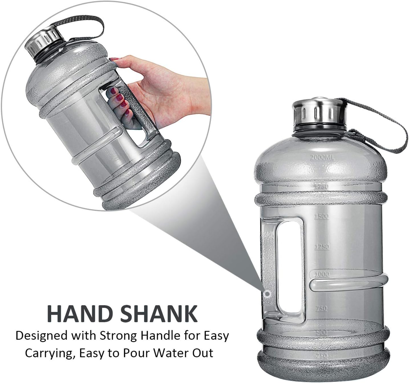 Vaupan Half Gallon Big Water Bottle, 2.2L/73 OZ Large Leak Proof Sports Jug with Handle, Huge BPA Free PETG Plastic Wide Mouth Drinking Container Flask for Fitness Gym Biking Travel Outdoor Water Jug