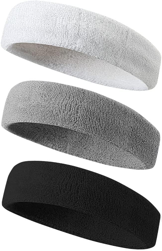 Proxima Direct Sweatbands, 3 Pack Ports Headband for Women Men Girls Boys, Super Comfy Sports Sweatband for Gym Workout Yoga Soccer Boxing Tennis