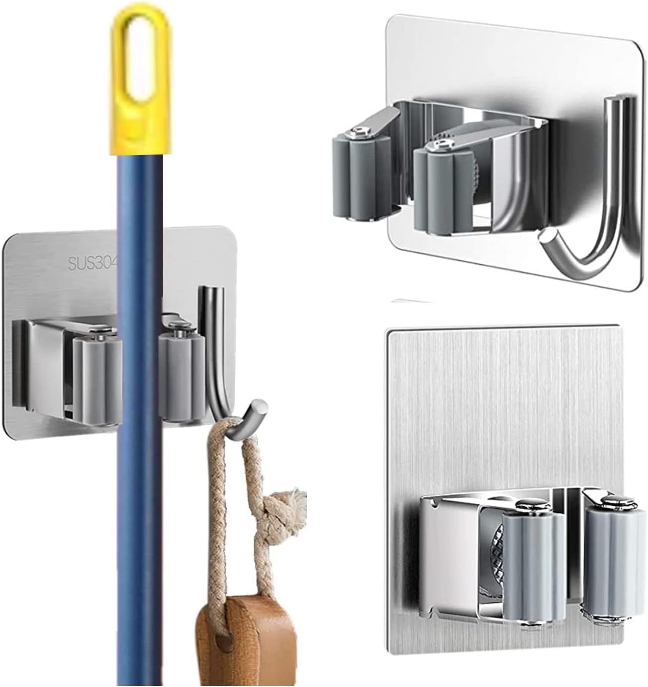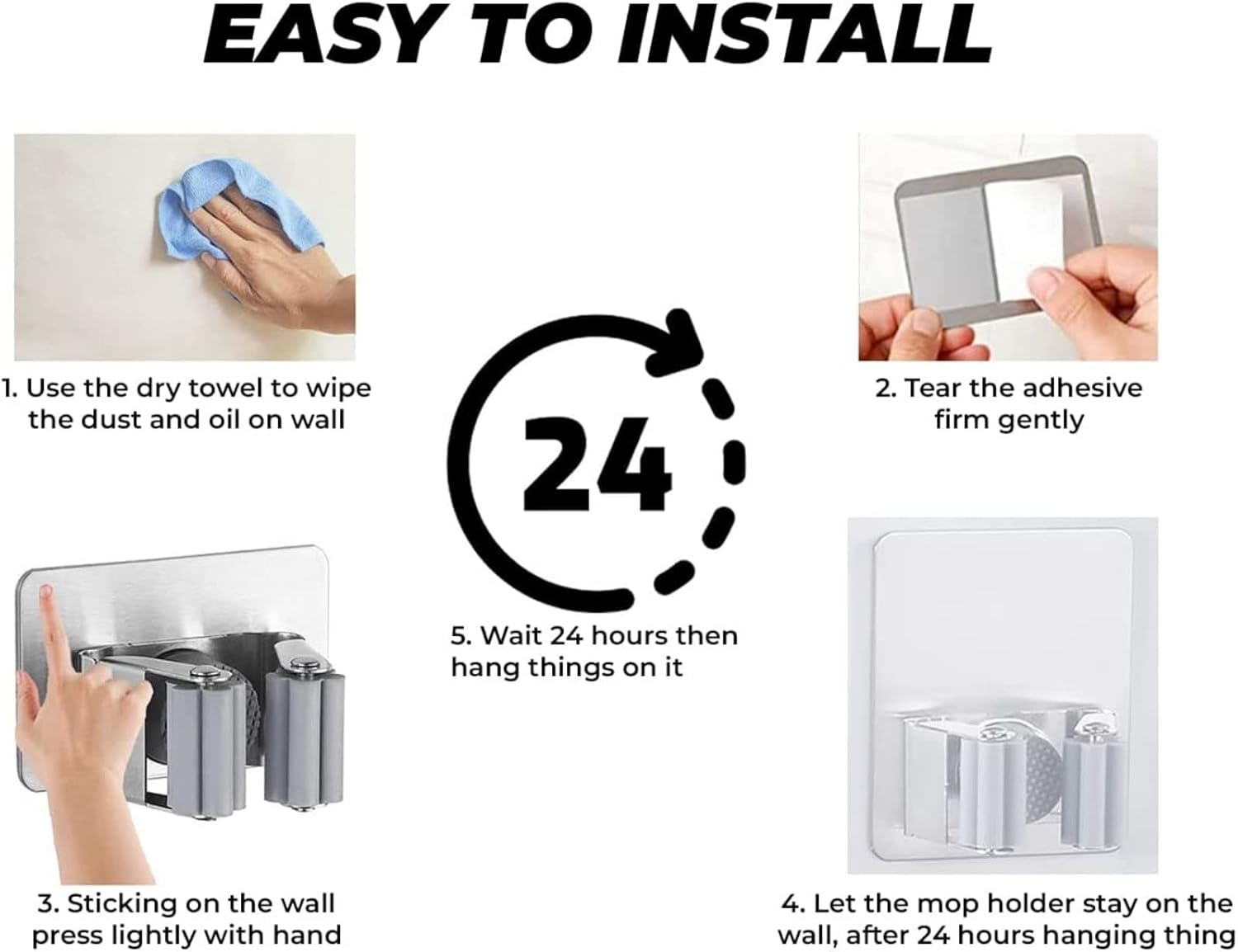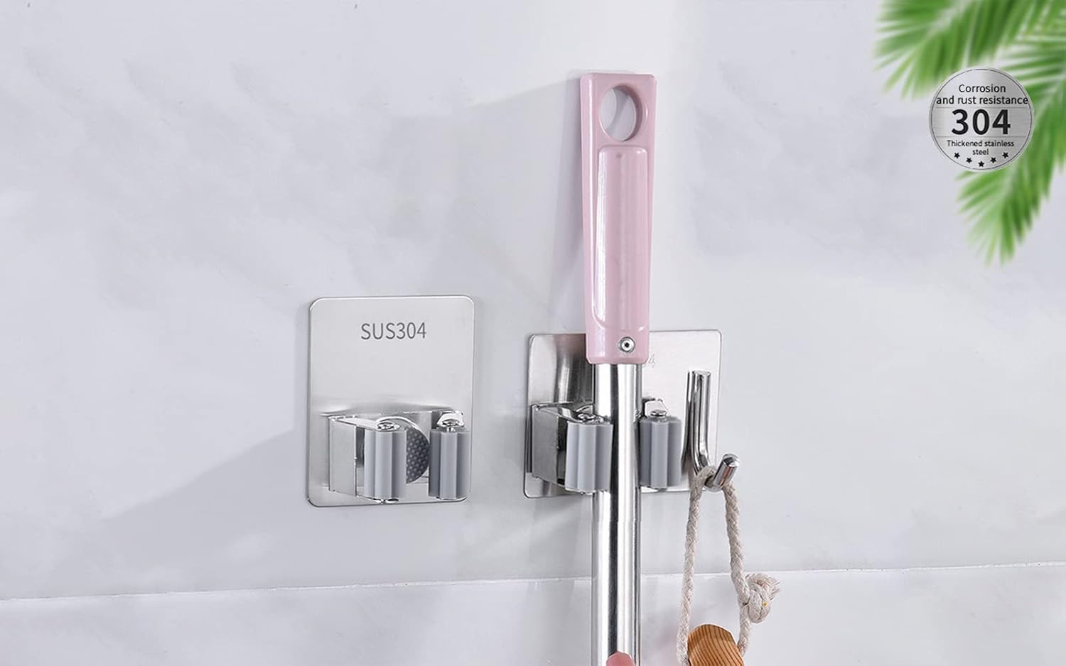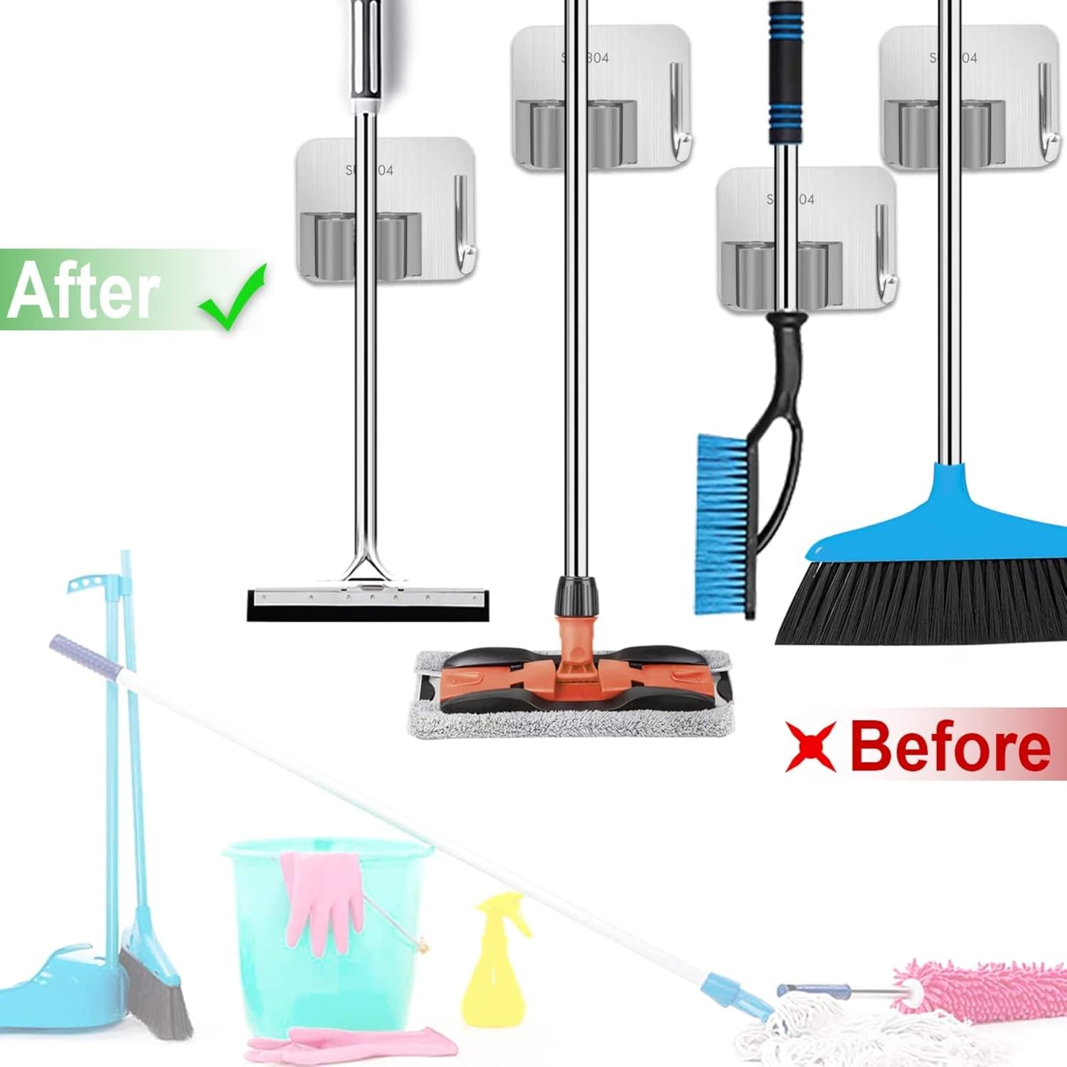 🏠 Stable and Durable, No sharp edges-There is a strong adhesive pad in the back of Mop organizer preventing the items from dropping. The load bearing is 10Kgs.