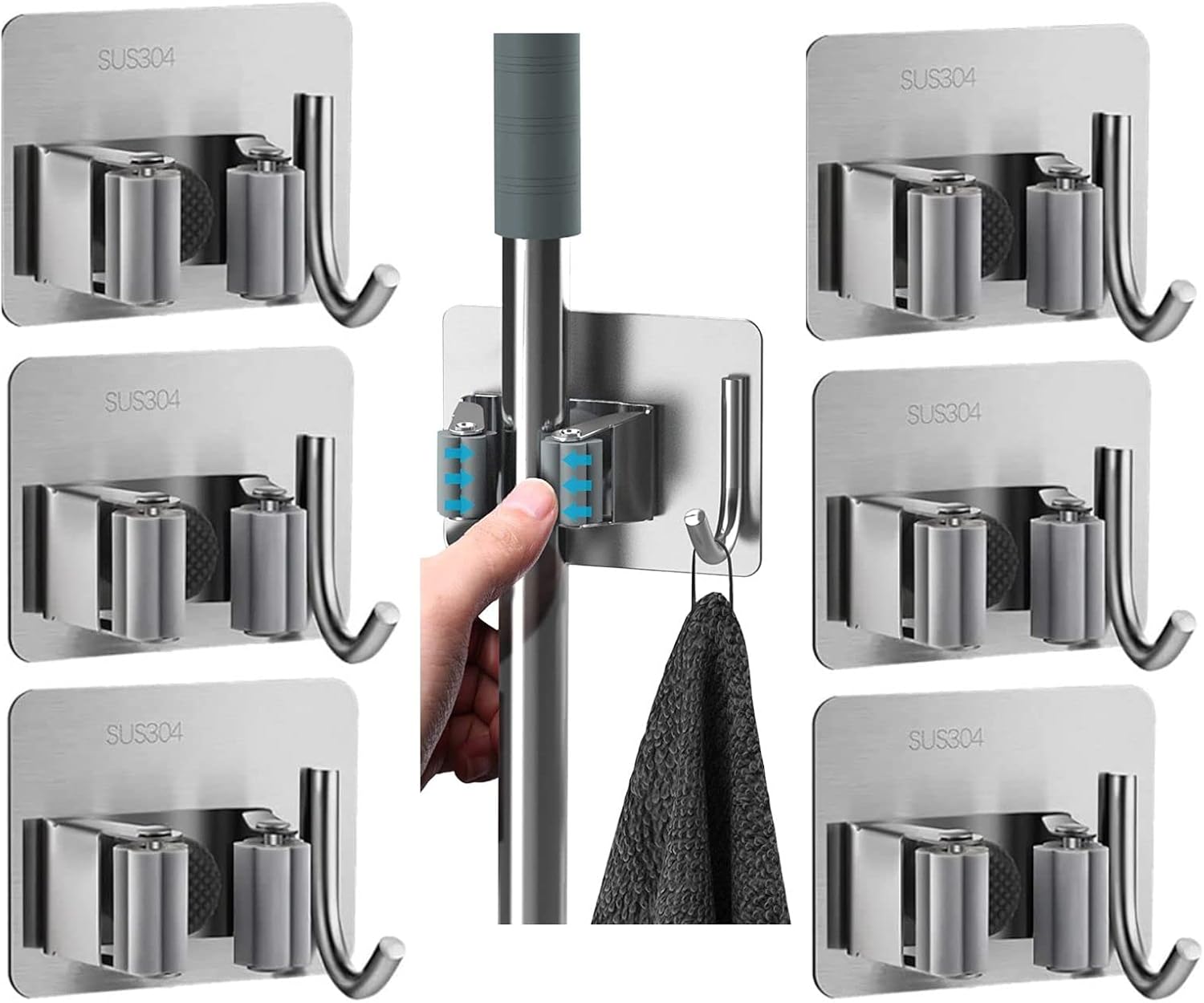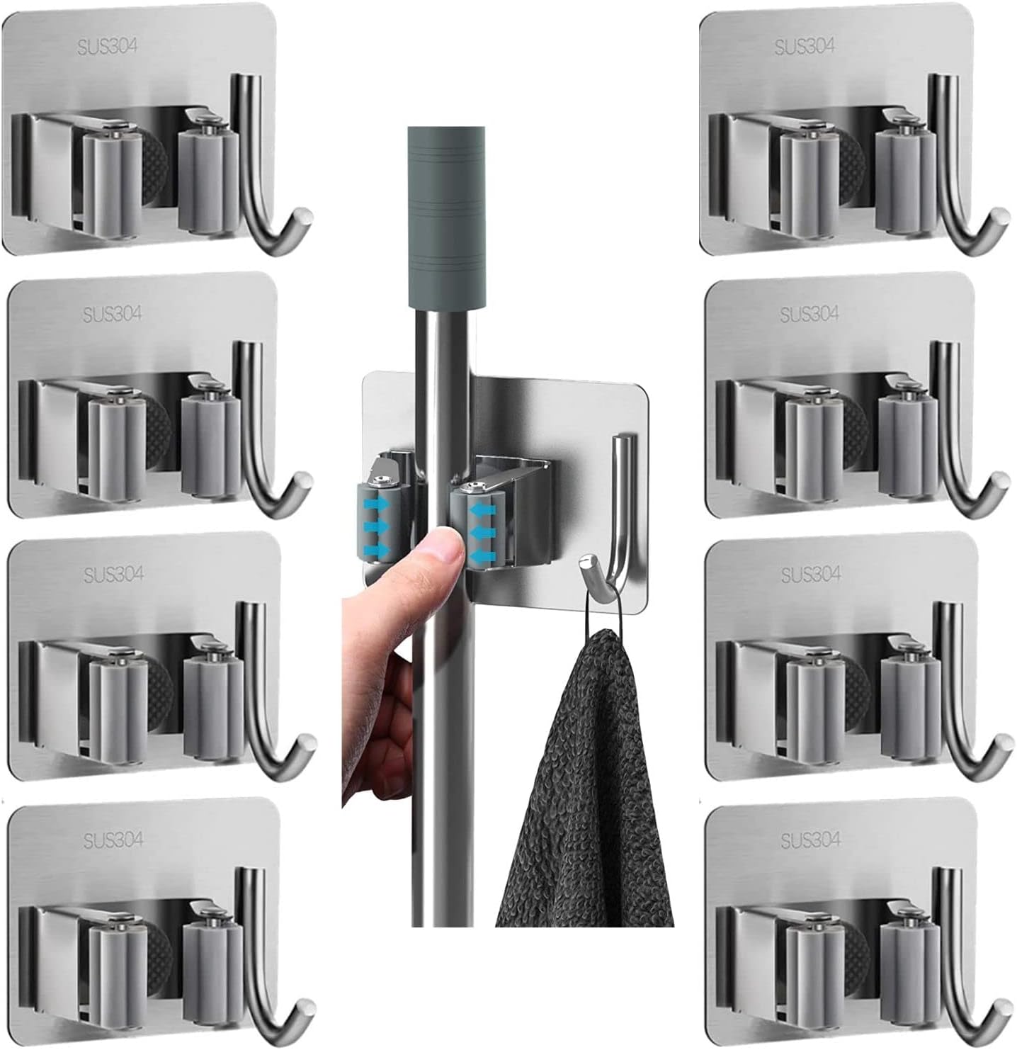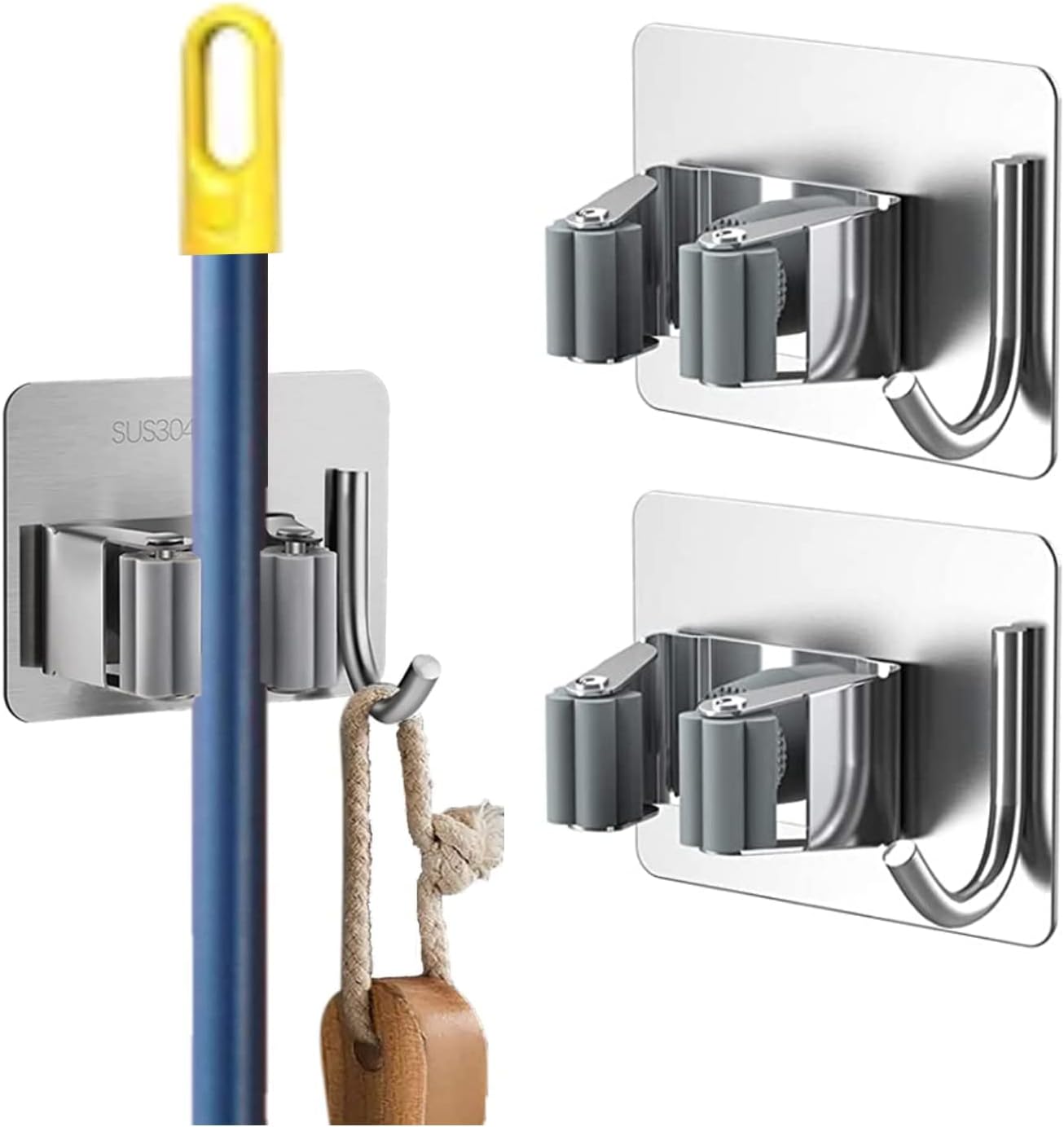 🏠 Stable and Durable, No sharp edges-There is a strong adhesive pad in the back of Mop organizer preventing the items from dropping. The load bearing is 10Kgs.