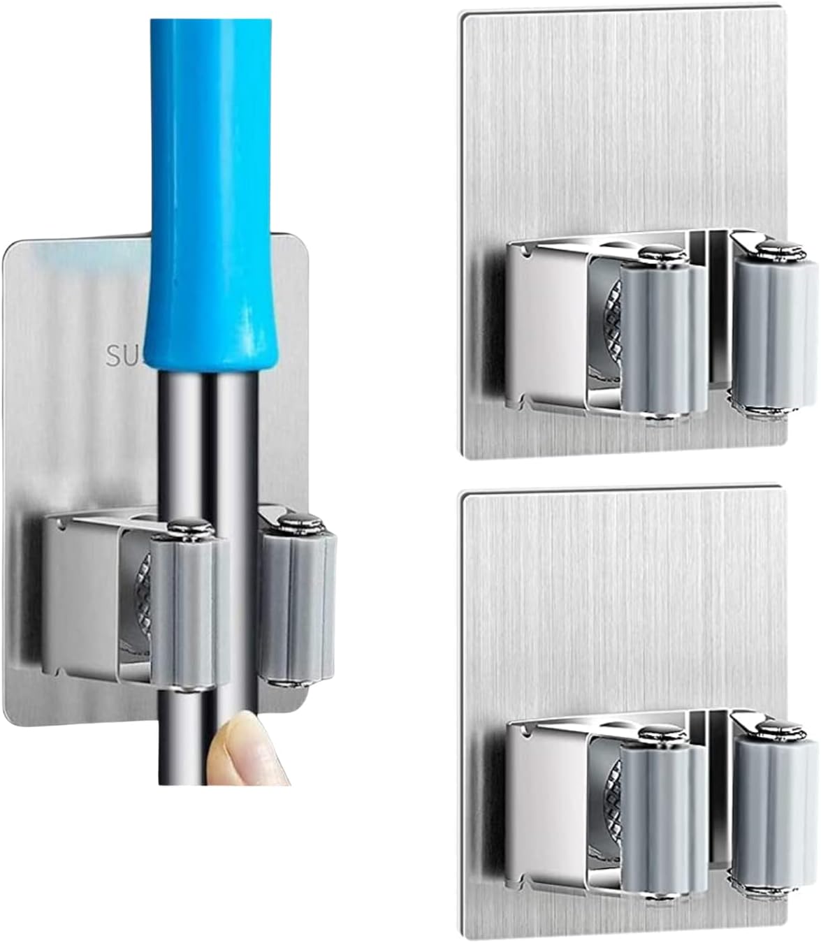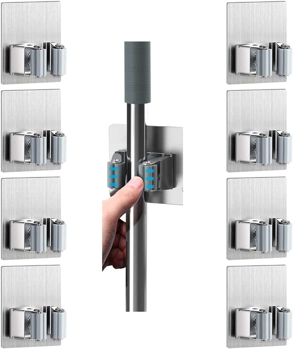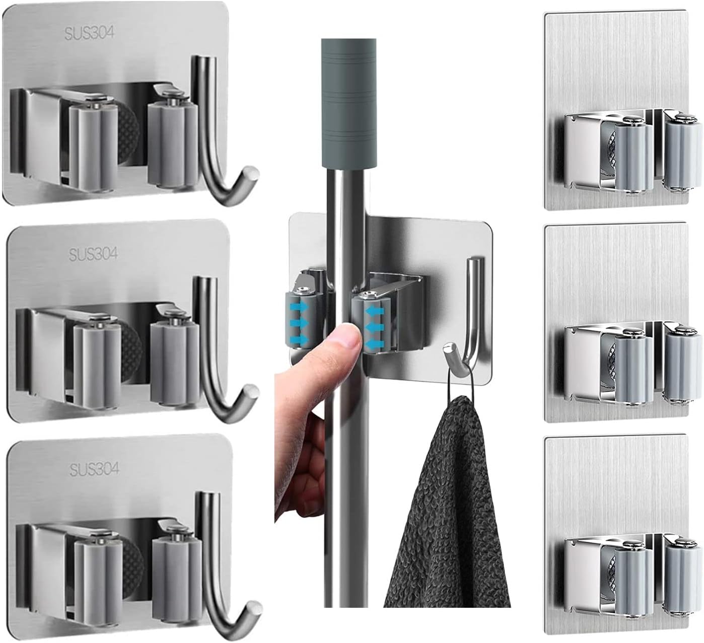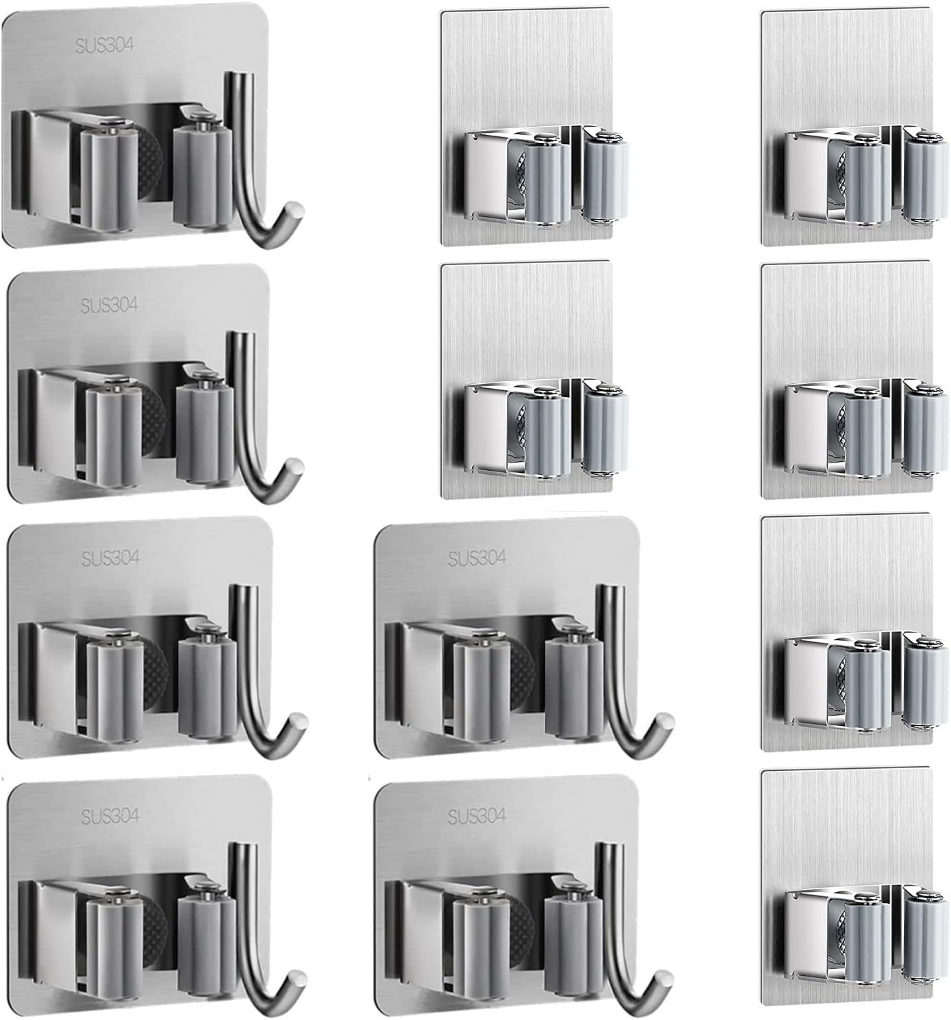 🏠 Stable and Durable, No sharp edges-There is a strong adhesive pad in the back of Mop organizer preventing the items from dropping. The load bearing is 10Kgs.