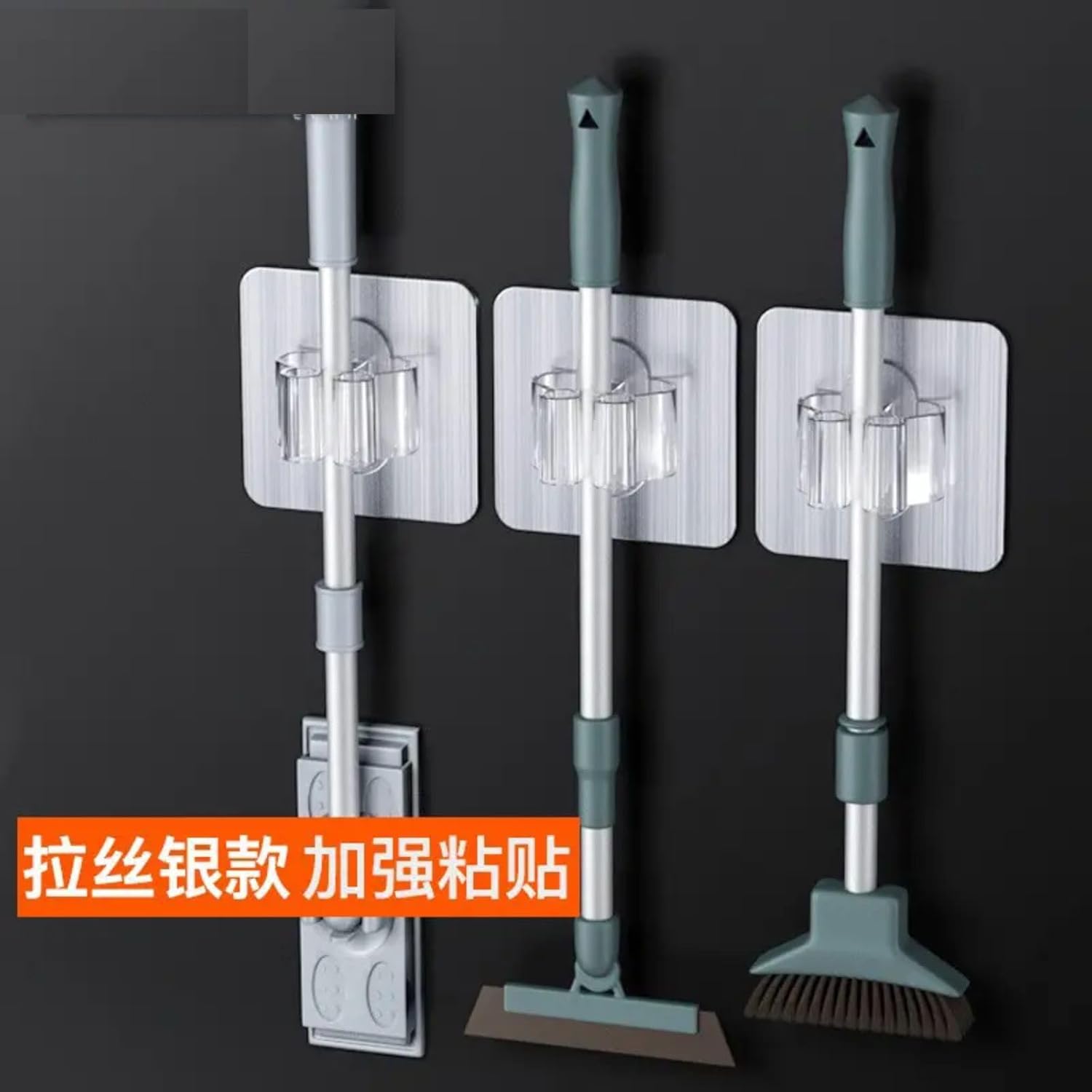 Self Adhesive broom holder wall mount can avoiding drill Hole on the wall,easy to install and damage free for hanging,the backing of mop and broom holder wall mount has an adhesive, It can be installed in a few seconds.