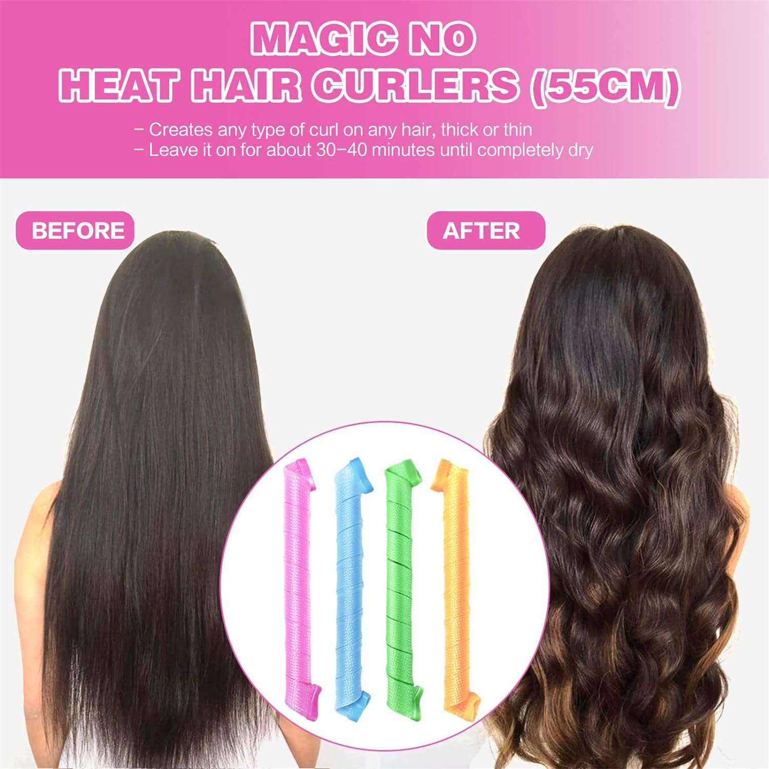 💕【Size Information】The flexible hair roller and curlers measure approx. 55 cm/ 21.6 inches in length, proper size is suitable for different long hair and fits most women and girls, you can choose proper quantity according to your hair volume when you use heatless spiral curlers.