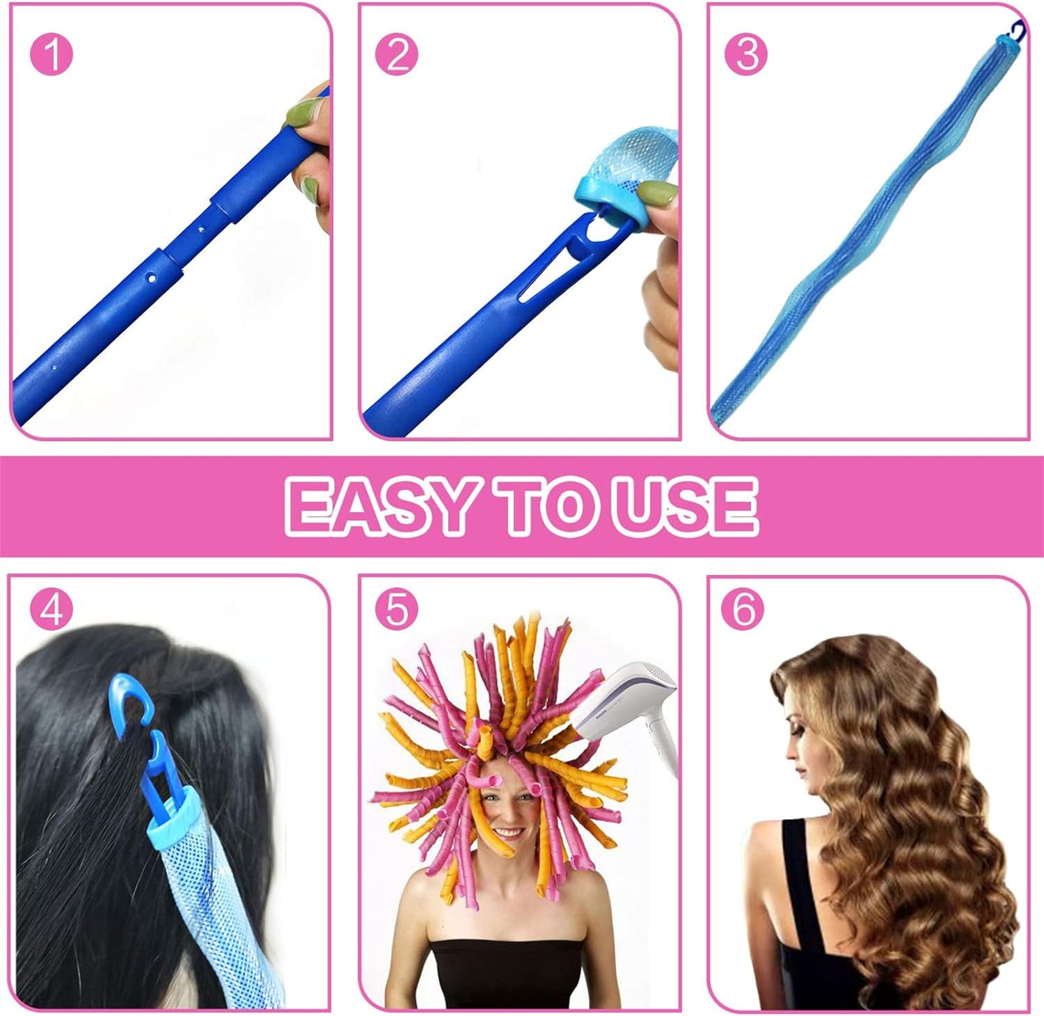 💕【No Hurt To Hair】The hair curler spiral curls can help you easily and quickly make beautiful and natural hair curls, unlike traditional heated styling irons, the hair curlers will not bring hurt to your hair, suitable for damaged, weak or fragile hair and can work well with hair extensions and wigs.