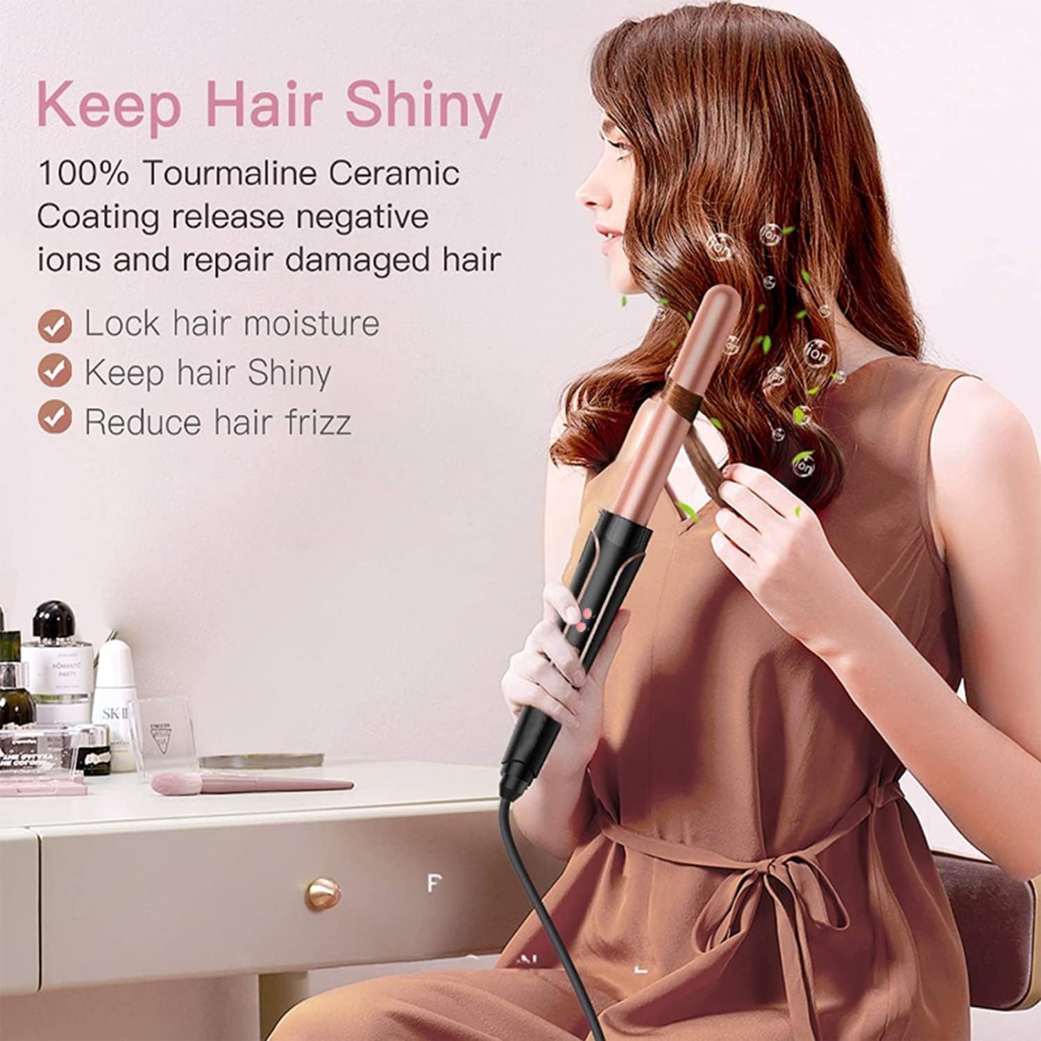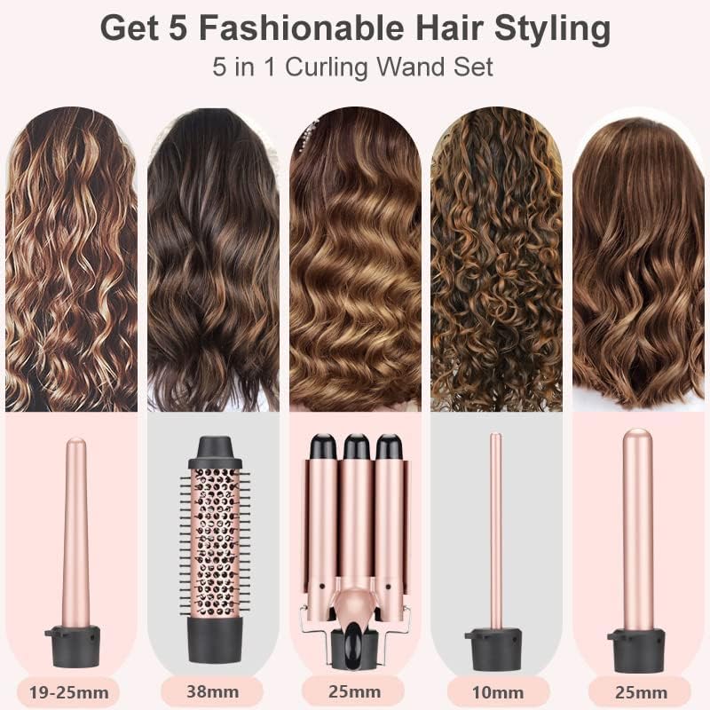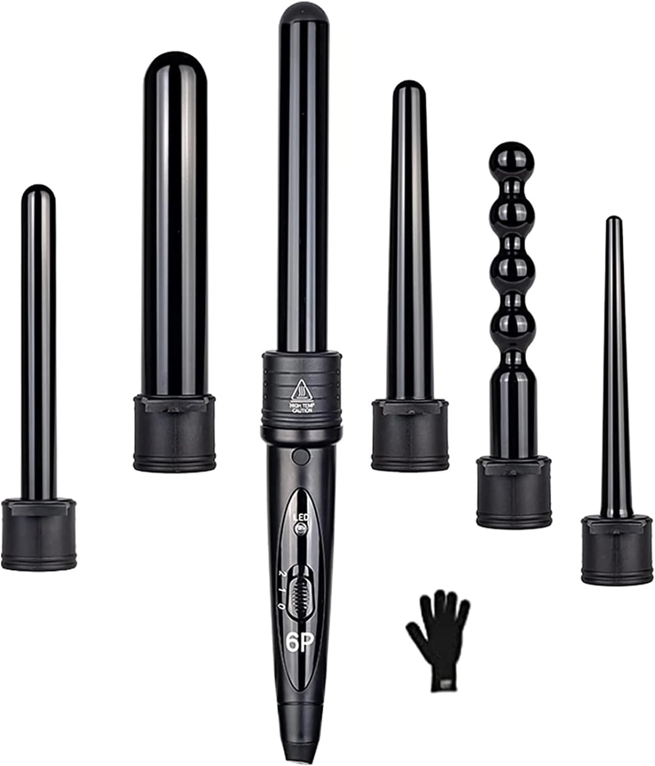 ◆ 5 IN 1 CURLING IRON SET - This professional curling iron kit comes with straight interchangeable barrels : 25mm,19-25mm,10-10mm, 25-25mm & 38-38mm and can do various sets, plus a heat resistant glove and 2pc clip. Easily create different curl types for a bouncy, wavy hairstyle.
