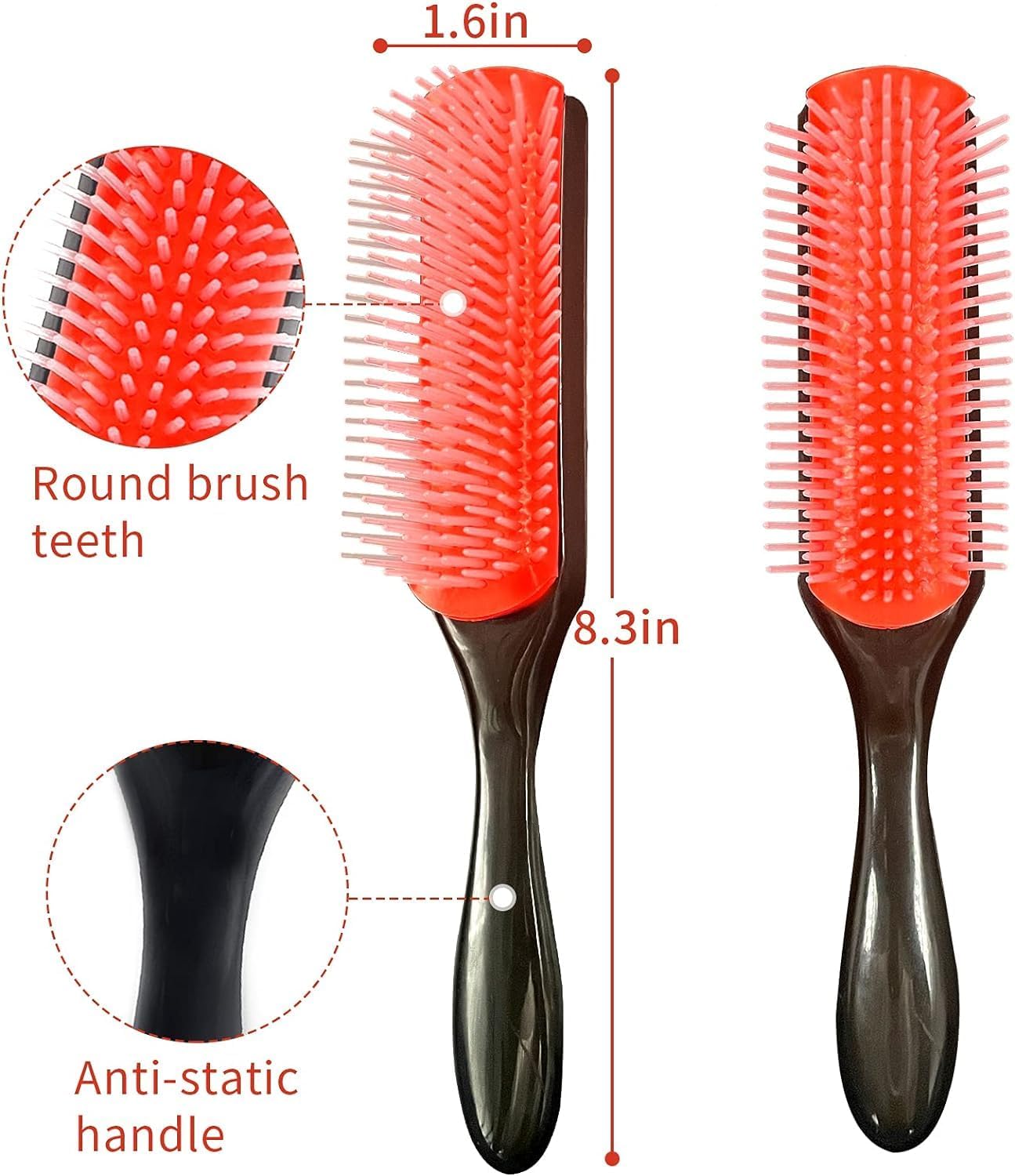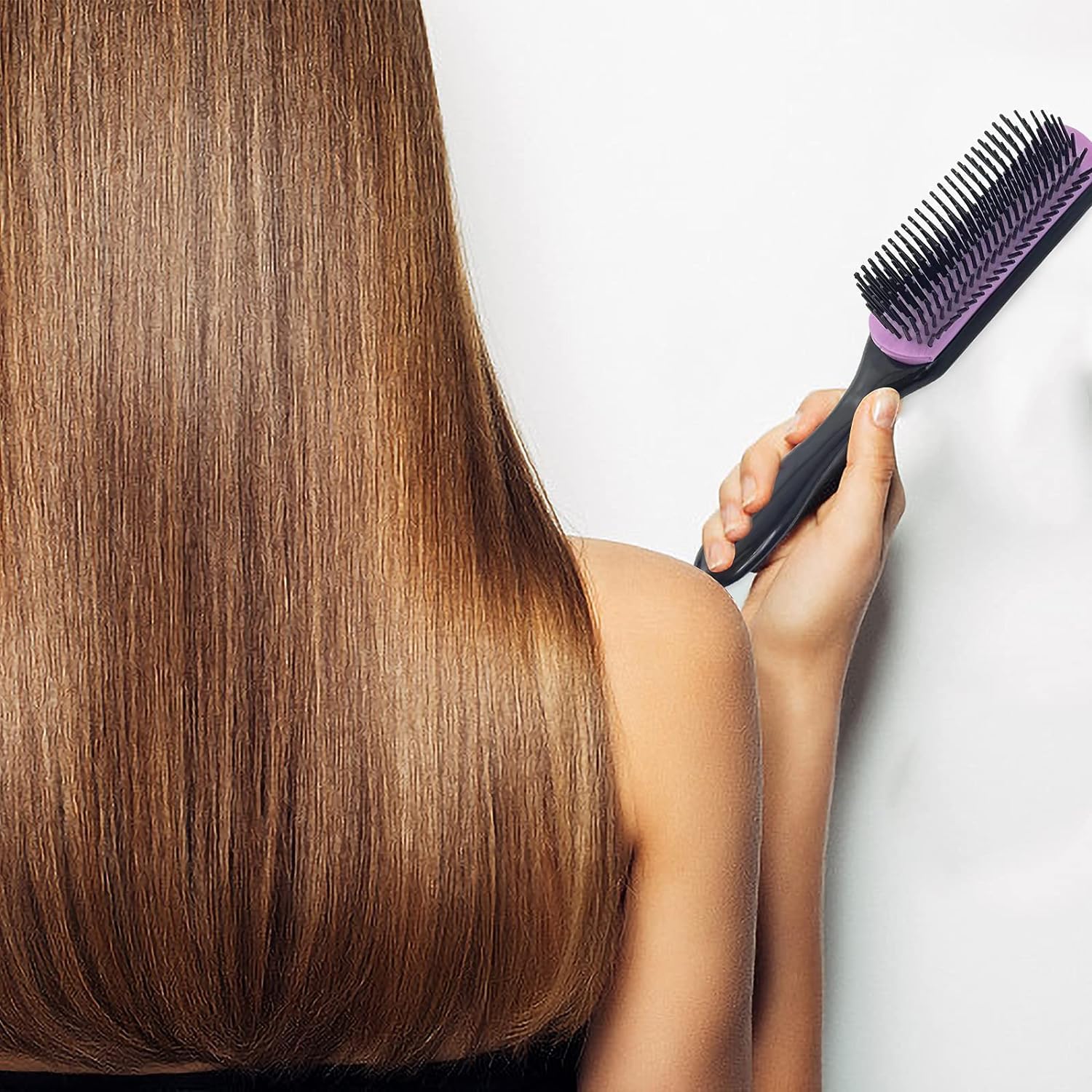 STYLING HAIR BRUSH: 9-Row Styling Brush Detangler Is Easy To Brush Your Hair Without Tearing Or Bringing Discomfort, Its Round-Ended Nylon Bristles Will Provide A Softer, Denser And Enhanced Movement On Your Hair, Good For Smoothing, Shaping, Polishing The Hair And Defining The Curls.