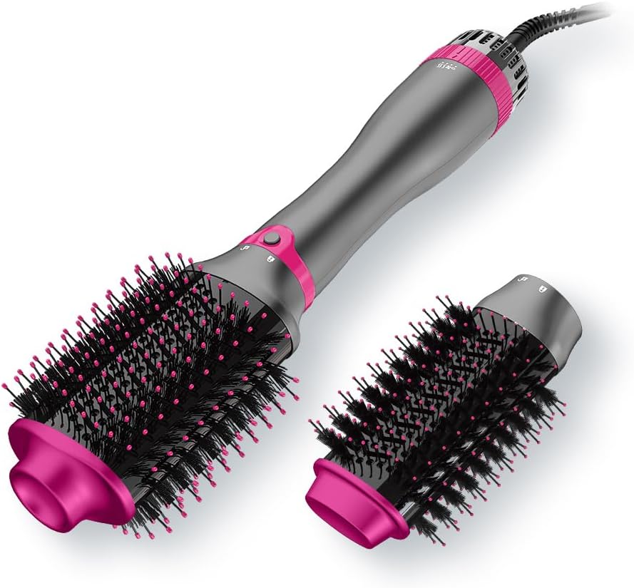 KinseiBeauty Hair Dryer Brush, 3-in-1 Hot Air Brush for Hair Styler and Frizz Control, One Step Hair Dryer with 2 Rechangeable Brushhead for Straight and Curly Hair