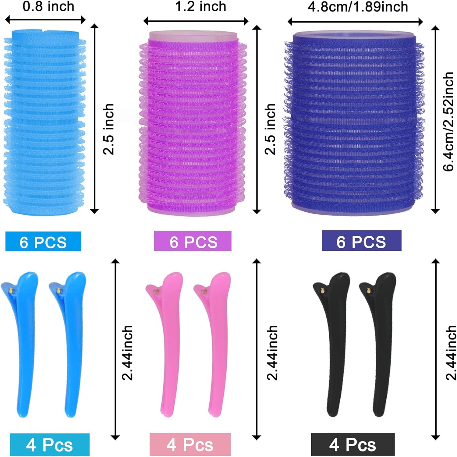 Package include: comes with 18 pieces salon hairdressing curlers in 3 different sizes, 6 pcs of each size. 12 pieces plastic duckbill clips, nice combinations for completing the styling, drying, coloring and curling process by yourself
