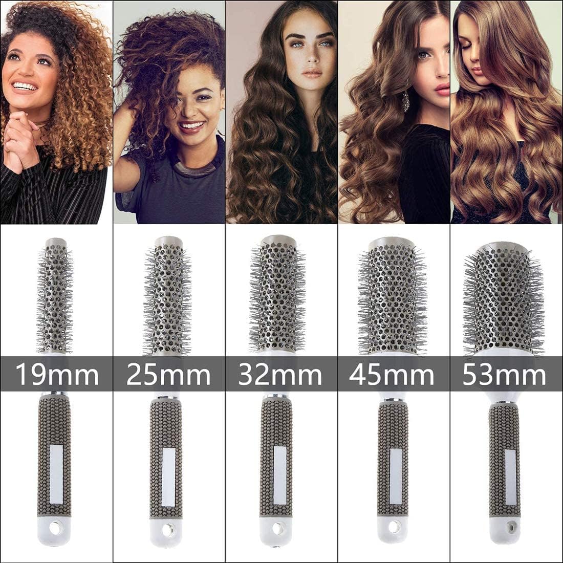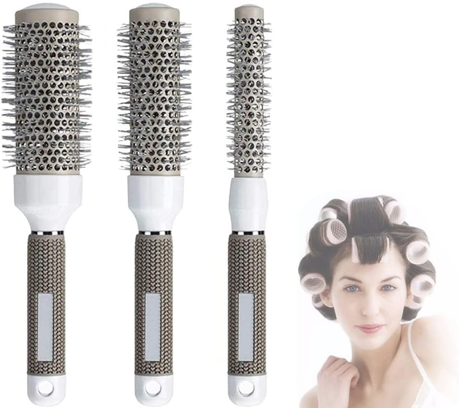 Round Hair Brush Curled Ceramic Hair Styling Brush, Ceramic Round Hair Brush Barrel Hairdressing Hair Salon Styling Barrel Curling Brush Tool Set(19mm 25mm 32mm) Set of 3