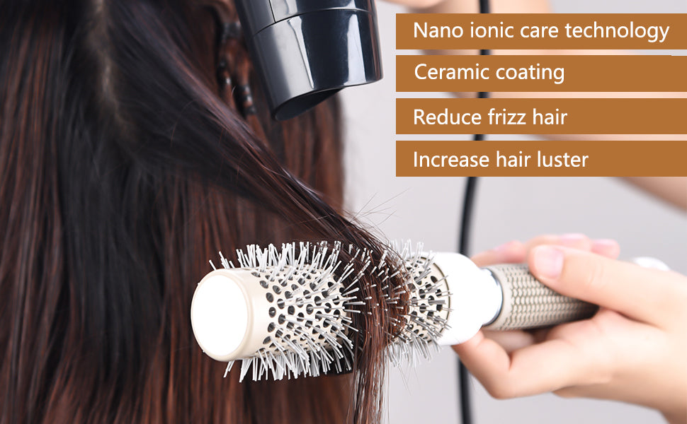 ✅Ceramic coating and nano ionic care technology, hairbrush round do not hurt the hair, helps reduce frizz hair, increase hair luster, makes hair more smooth and shining.