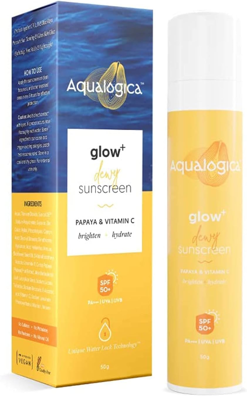 Aqualogica Glow+ Dewy Sunscreen SPF 50 PA+++ For UVA/B & Blue Light Protection, for Glowing & Well Protected Skin, Cream, 50G