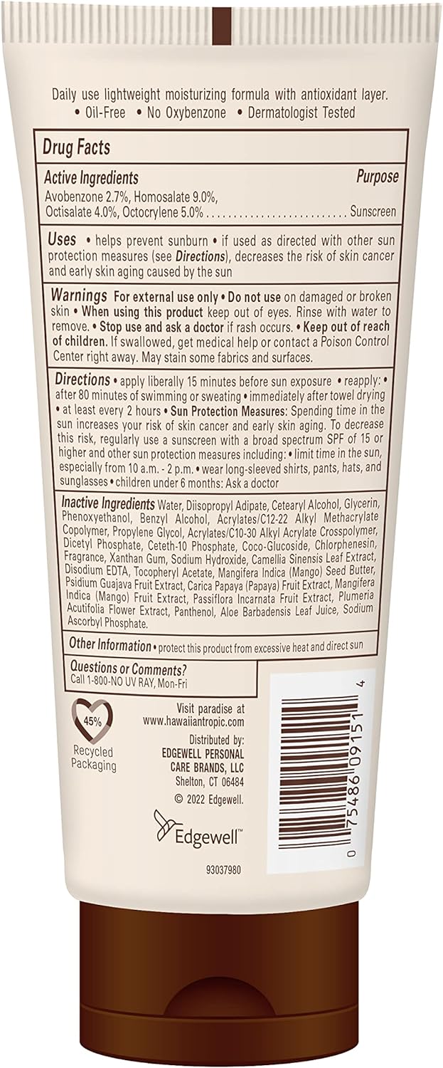 Hawaiian Tropic Antioxidant+ Sunscreen Lotion is formulated with a green tea complex to form a protective antioxidant layer on your skin.
