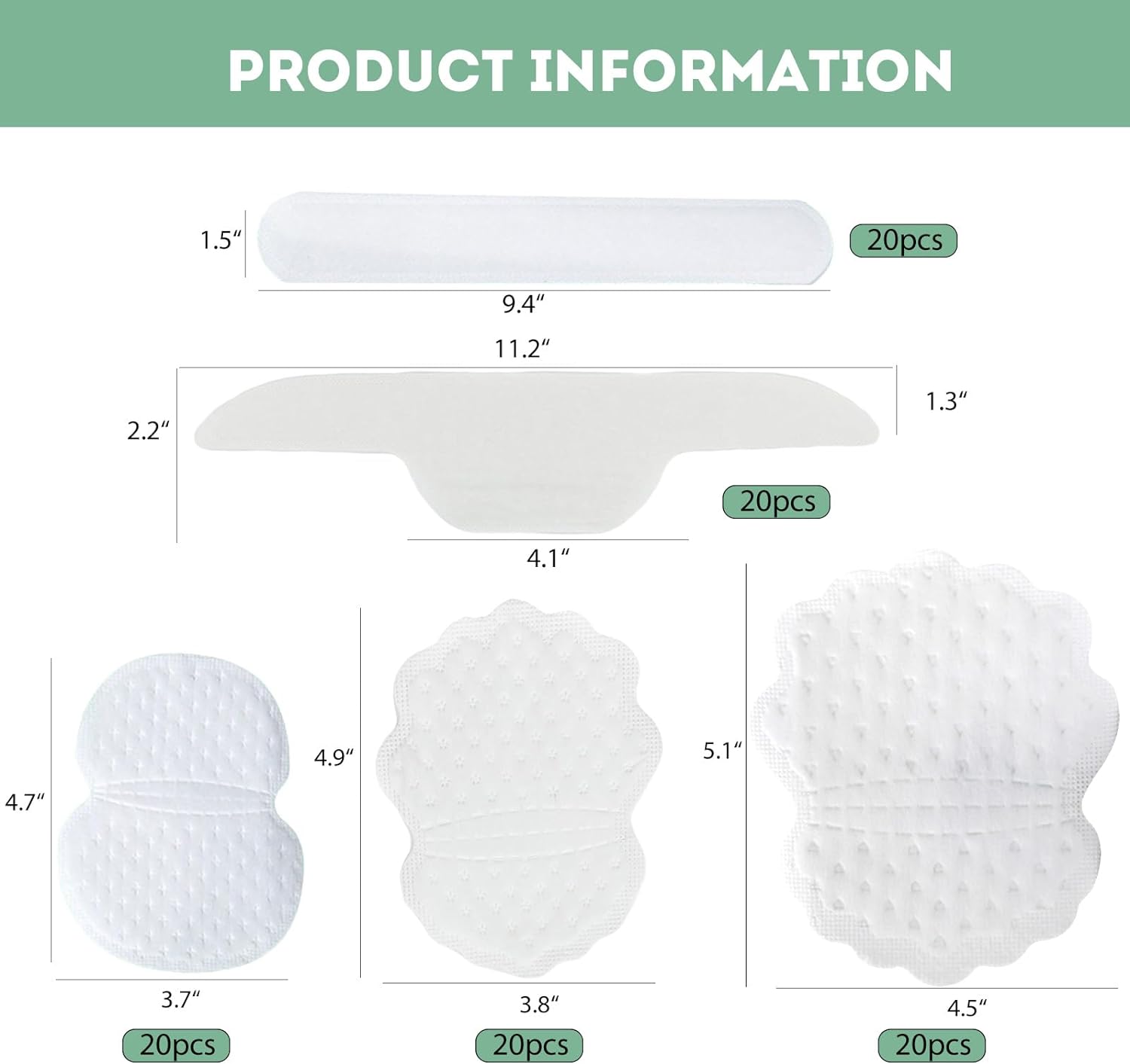 【 Function & Contains 】 Absorbing perspiration of underarm and other parts of body. Keeping your underarms, head, and neck clean and dry all day long. Garment. Package contains:20pcs Normal Armpit Sweat Pads+20pcs Flower Shape Armpit Sweat Pads+20pcs Plum Blossom Shaped Armpit Sweat Pads (Peppermint flavor)+20pcs Collar Sweat Pads+20pcs Hat Sweat Pads.