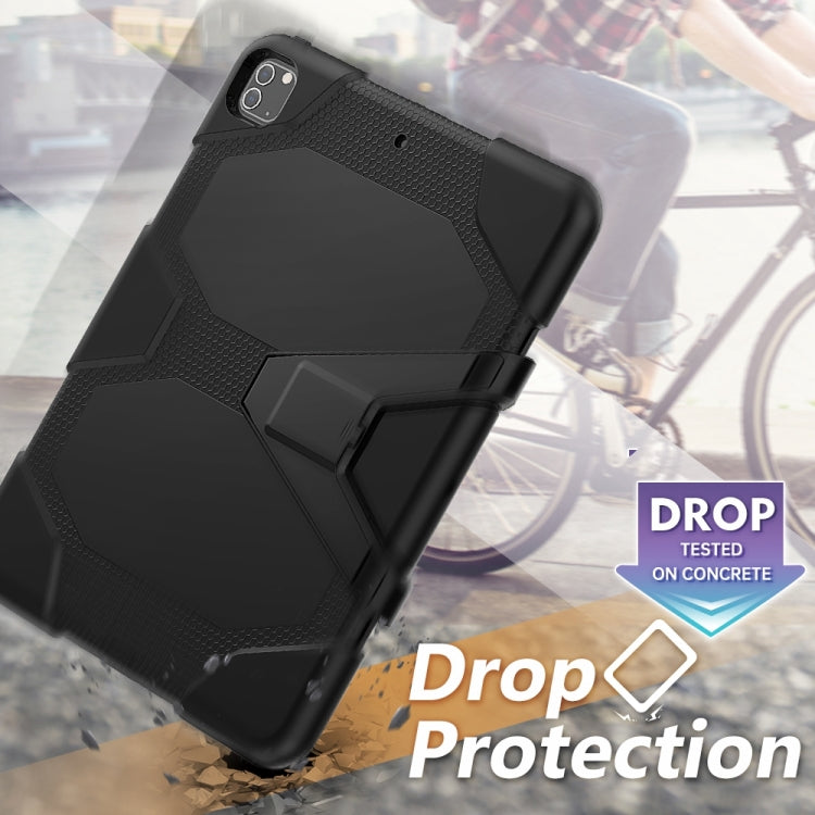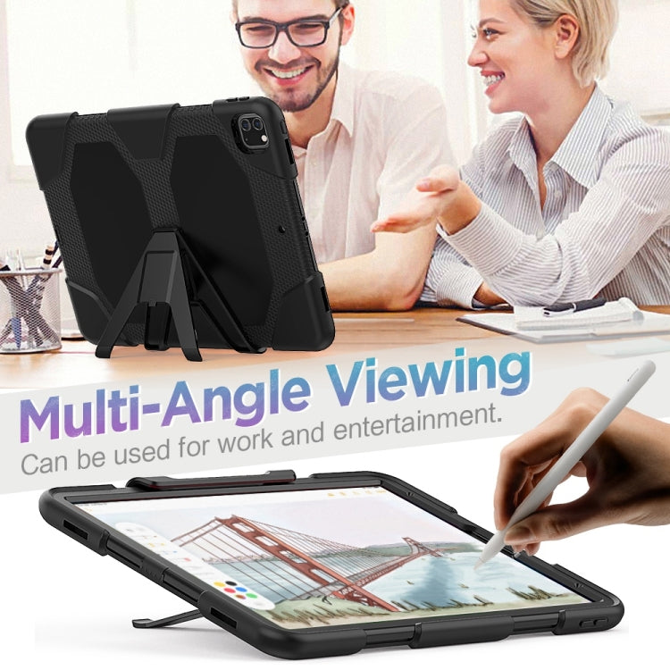 For iPad Pro 12.9 inch (2020) Shockproof Colorful Silicon + PC Protective Tablet Case with Holder & Shoulder Strap & Hand Strap (Black)