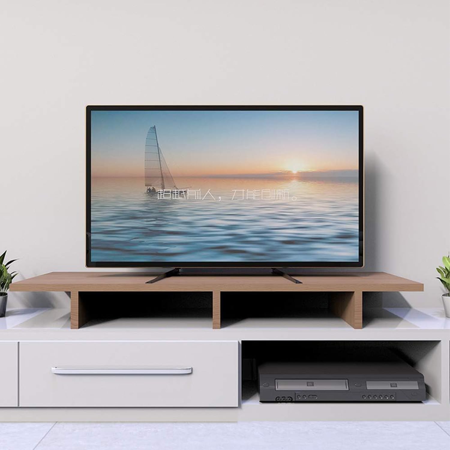 HEIGHT ADJUSTMENT 25''-27.4''-This table top tv stand riser can adjust the TV view height in two ways. First by chosen the different VESA pattern holes at the back of your TV . Second through the three sets holes on the bracket (Reference product images)