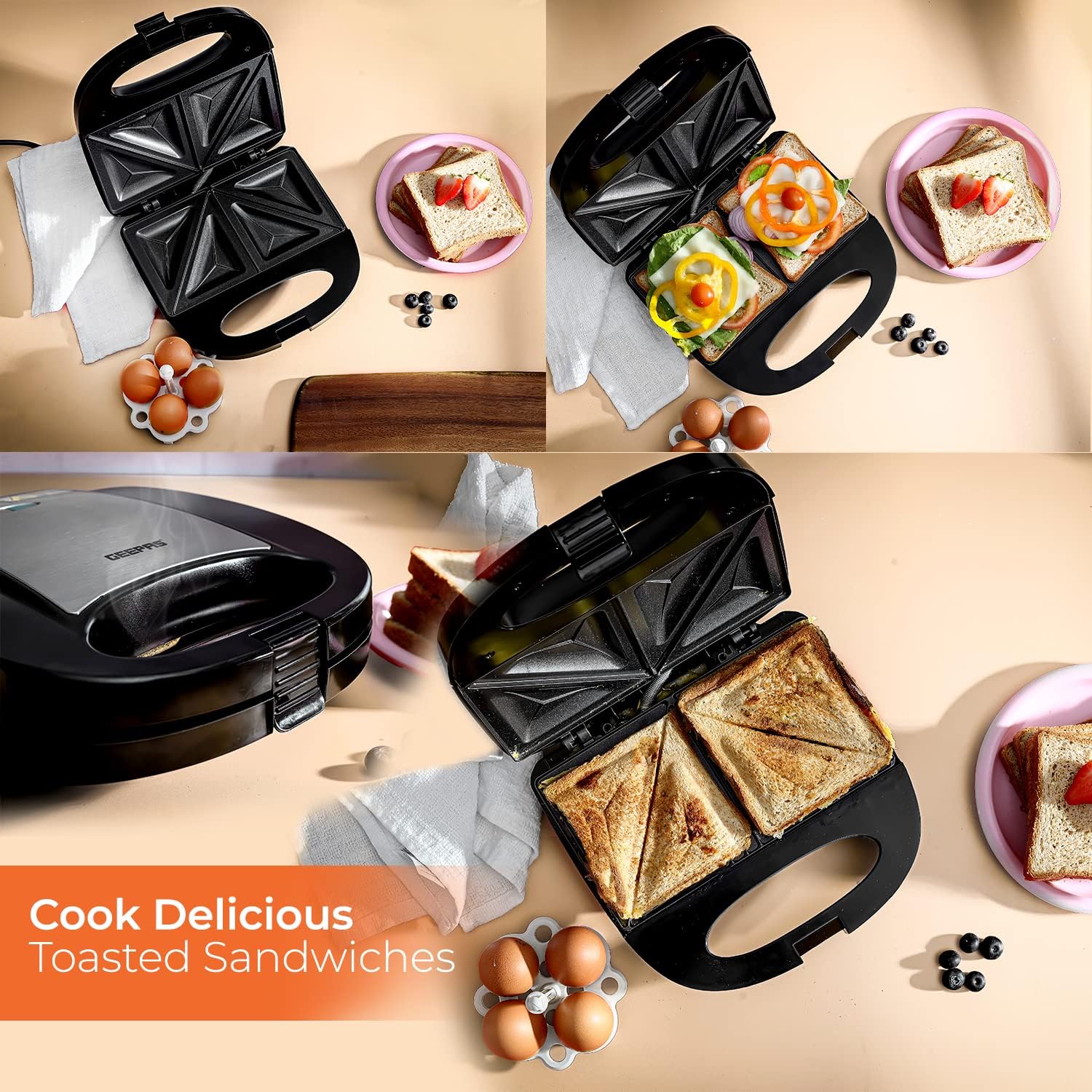 NON-STICK COATING PLATE, EASY CLEANING - The sandwich plates are made from the non-stick material. Therefore, no food gets stuck to it. You get intact sandwiches, and it also makes it really easy to clean. Enjoy an attractive stainless steel body and a sleek, compact design that's easy to store.