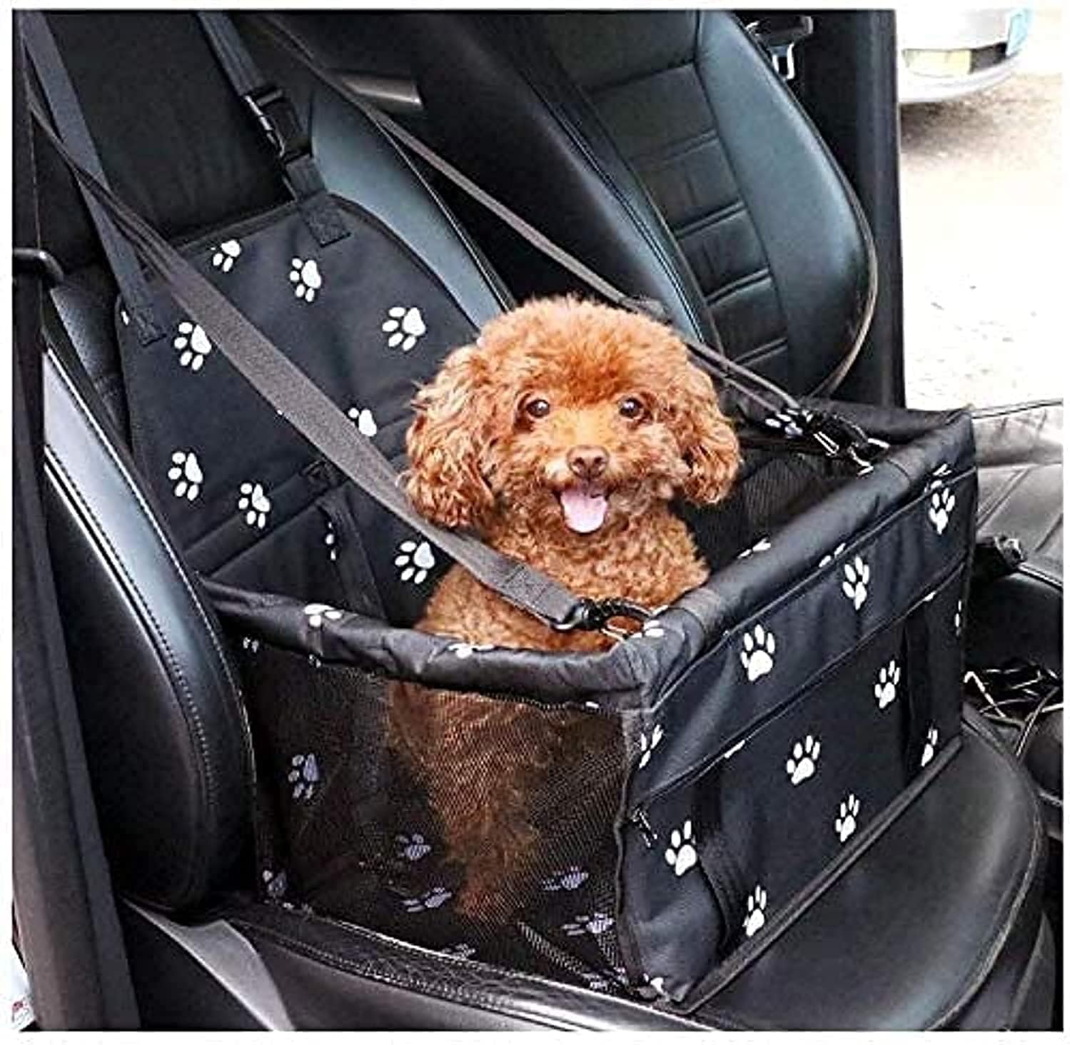 The dog car seat booster design with two safety belts fix the booster seat to prevent it sliding in the car, make pet won't disturb you when you driving. Adjustable straps fit most cars, vehicles & SUV's, there is a ring to hook the dogs harness too so it wont jump out