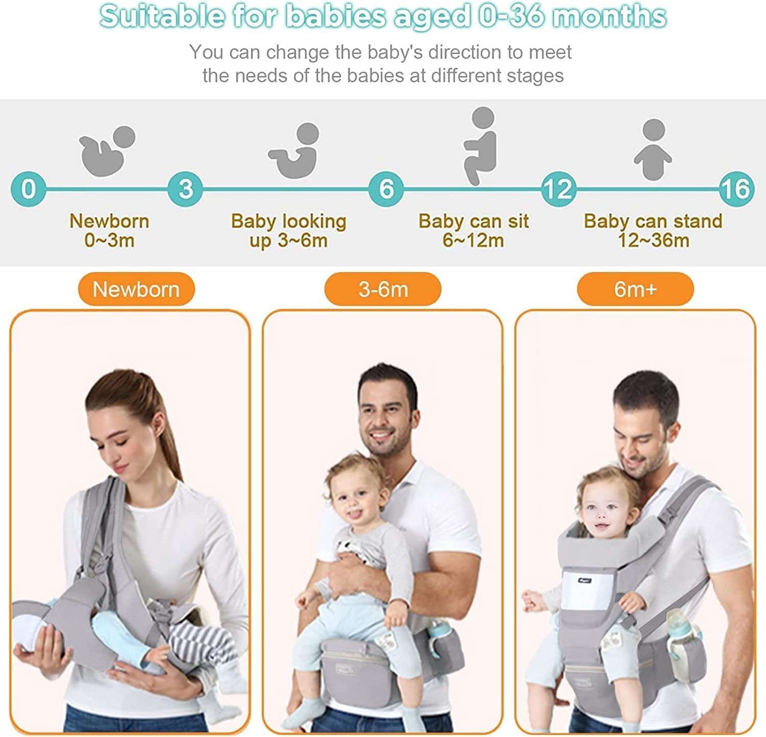 ✅ ADJUSTABLE DESIGN: This 6-in-1 convertible carrier boasts an adjustable ergonomic seat that can be tailored to your baby's needs. With adjustable shoulder straps and a waist belt, this carrier allows you to shift weight to your hips for a more comfortable fit.