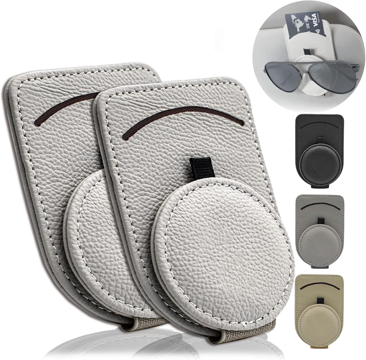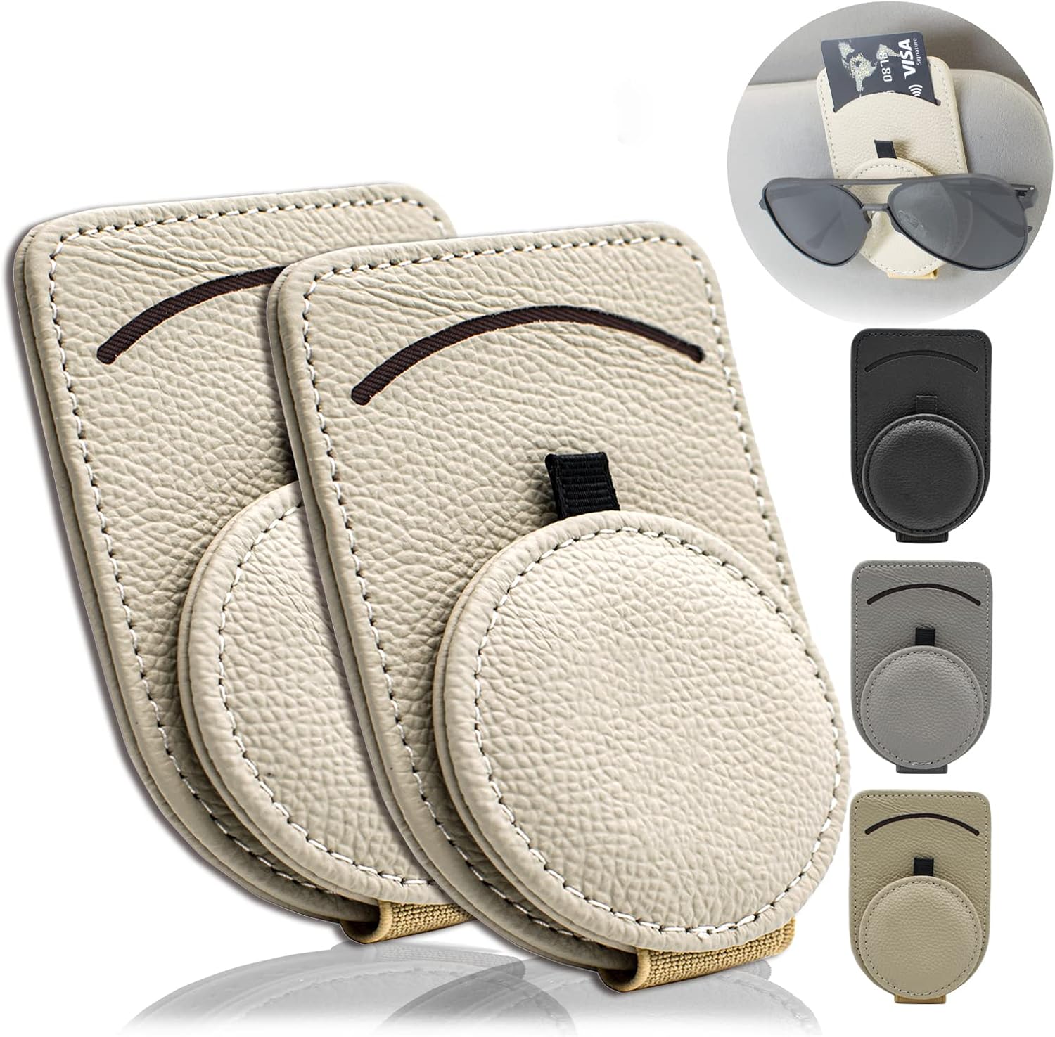 Sunglass Holder for Car Visor, Magnet Adsorbed Sunglasses Accessories Parts, Leather Holder, Visor Clip Glasses Cards Beige 1PCS SLUFA1