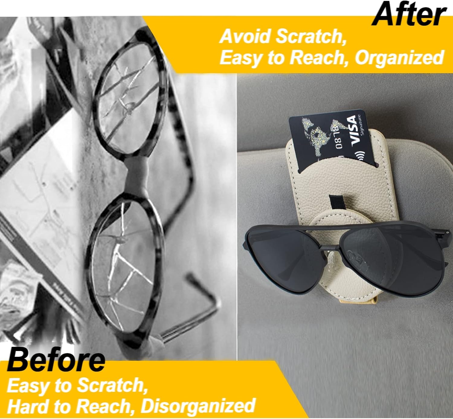 • Farewell to Messy Interior: This car visor sunglass holder can store any glasses, cards, masks, bills. It is lightweight and small, with streamlined design that blends really well to your visor.