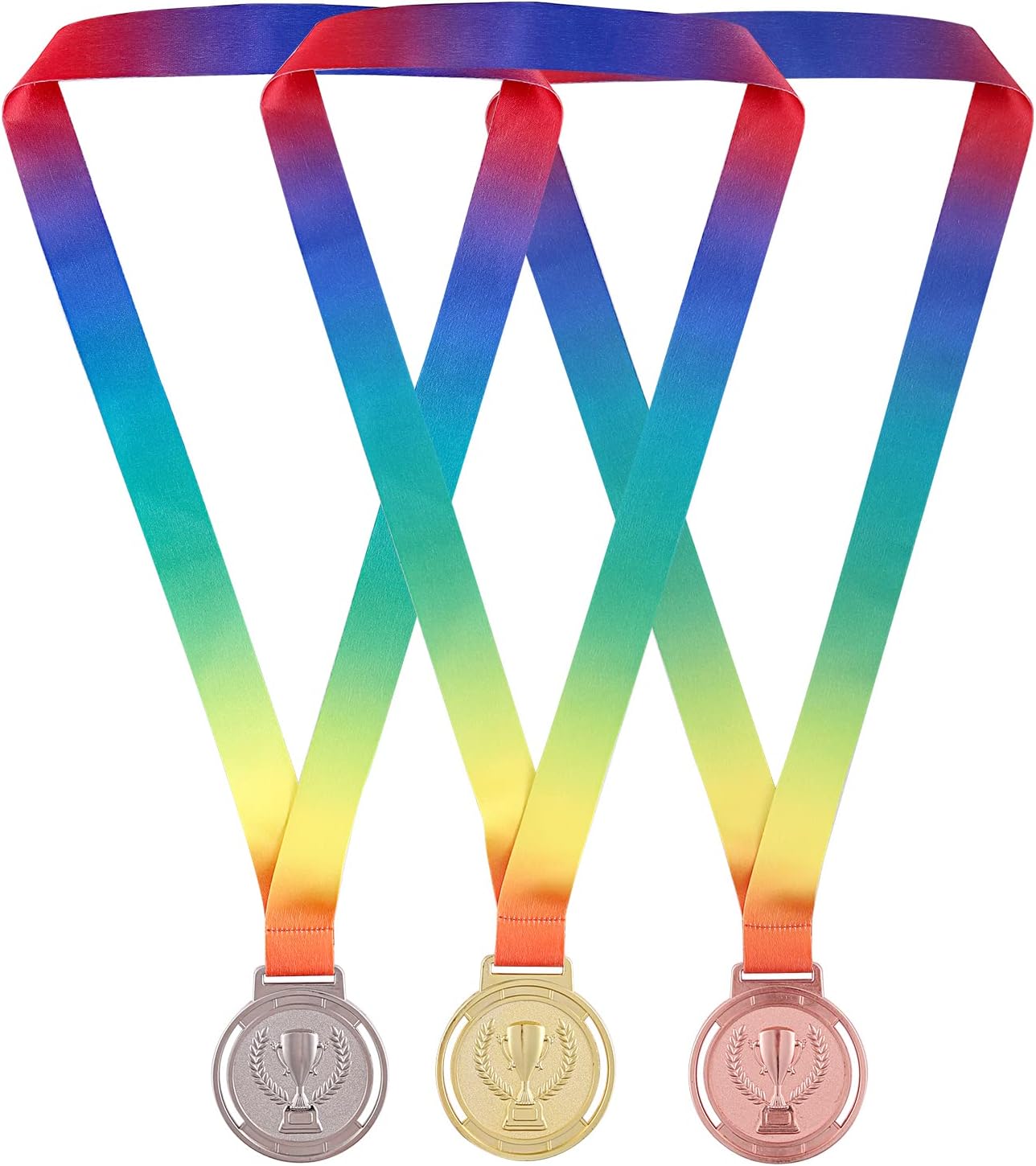RELIABLE QUALITY: These award medals are made of zinc alloy, heavy metal, like real winner medal, can be given for serious awards, and has a good collection commemorative significance. The rainbow ribbon is made of polyester.