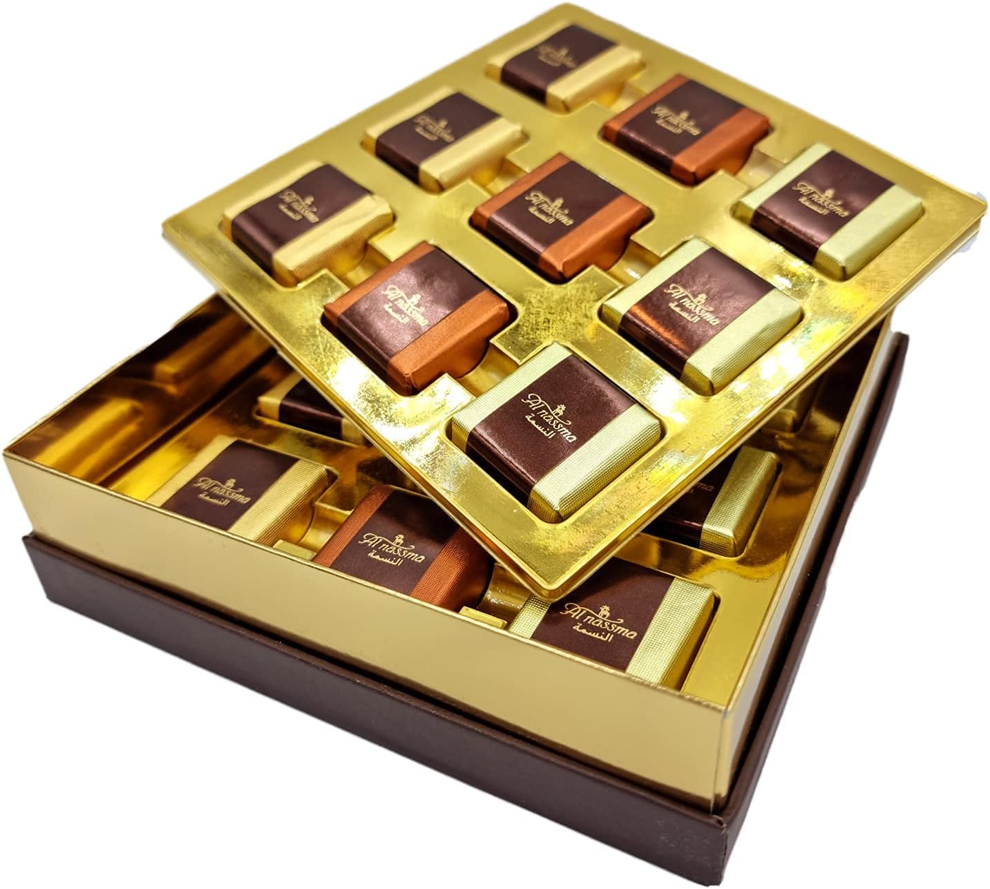 GOURMET CHOCOLATE: 18-piece Al Nassma Chocolate Praline Gift Box features a unique assortment of Camel Milk chocolates artfully combined with our authentic fillings to give you a rich silky smooth texture as you have never experienced before