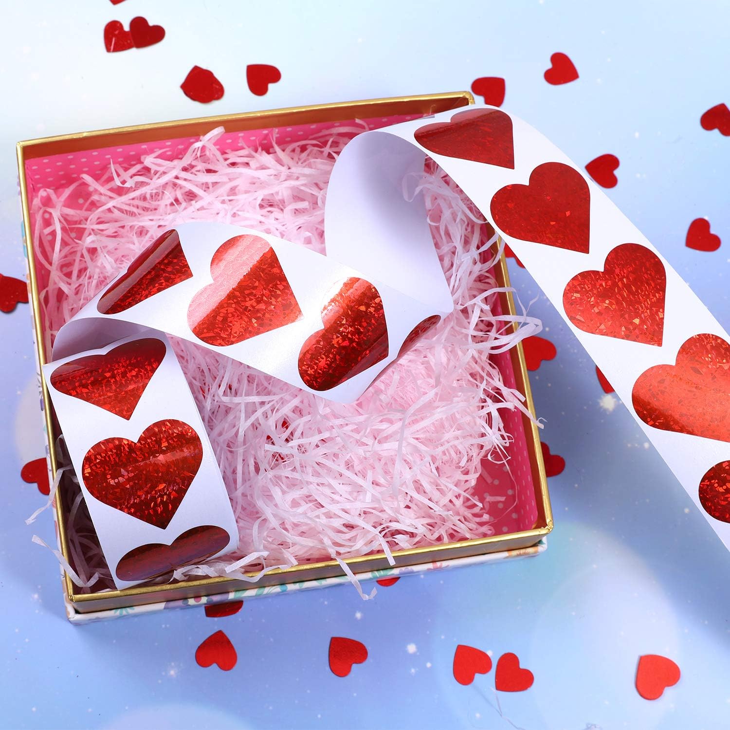 Quantity: each pack contains 1 roll of stickers with 500 pieces of heart stickers, enough for Valentine's Day and daily decorations