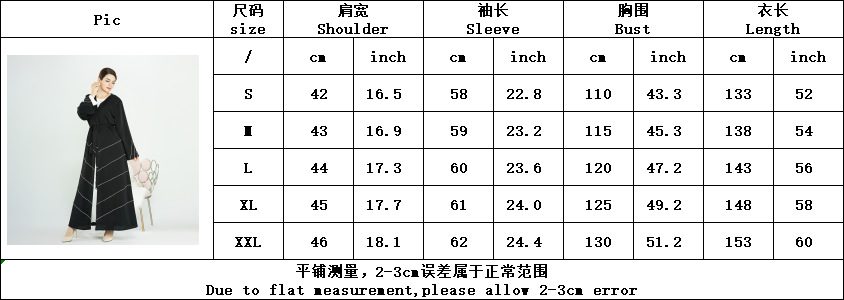 S: Bust 110 cm,Sleeve 58cm, Length 133 cm ,Shoulder 42cm,