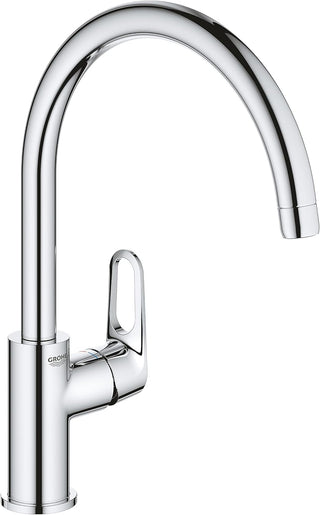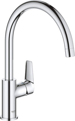 GROHE BauEdge Single Lever Sink Mixer | Kitchen Fixtures | Kitchen Faucet With High Spout | Swivel Area 360˚ |Easy Installation | 31367001