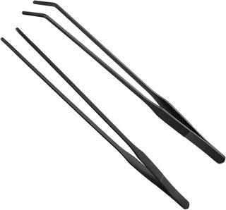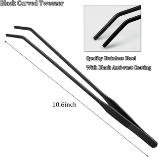 HRASY Black Aquarium Tweezers Set Stainless Steel Straight and Curved Tweezers Long Handle Reptile Feeding Tongs for Fish Tank Aquatic Plants, Pack of 2, 10.6 Inch
