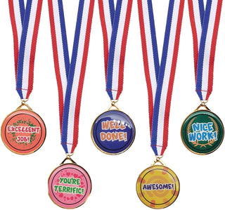 Home Smart Award Medal Set of 5 Pcs Assorted Color and Design with Ribbon Party Favors and Sport Competitions Awards