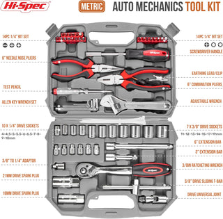 Hi-Spec Tools 67-Pc Auto Mechanics Tool Set - A Car Tools Repair Essential, Packed with Auto Mechanics Tools for Daily Maintenance, Car Tools Kit Mechanic in Car Tool Kit Box for on-the-go Readiness