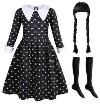 AmzBarley Girls Addams Costume Little Kids Addams Family Dress Up for Halloween Cosplay Birthday Party