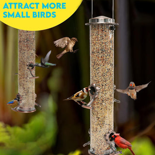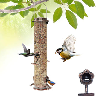 Angju Bird Feeder for Outside, Bird Feeder w/4 Feeding Ports, Stainless Steel Hanging Wild Bird Feeders for Garden Backyard Outdoor Decoration Attracting Birds