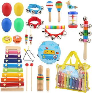 AM ANNA Kids Musical Instruments for Toddlers, 25 Pcs 13 Types Wooden Musical Toys Set for Toddlers Age 2-4 with Xylophone,Preschool Musical Toys for Boys and Girls with Storage Bag (25 Pcs)