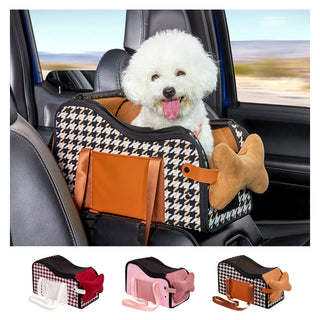 Amoilly Dog Car Seat For Small Dog, Center Console Puppy Car Seat, Pet Booster Seat For Car, Dirt-Proof Portable Pet Carrier For Outdoor, With Straps And Cooler Mat (Karamell)