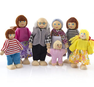 2019 Novelty Funny Gadgets Wooden Furniture Dolls House Family Miniature 7 People Set Toy For Kid Child Home Miniature Decoration Color Random