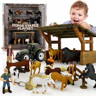 AM ANNA Horse Stable Playset Toys for Boys Girls Age 4-7,17 Pcs Cowboy Toy Spirit Toy Playset with Horses Figures Stall Tractor,Farm Animals Farmhouse Toys Farmer Vehicle (17 PCS Horse Stable Playset)