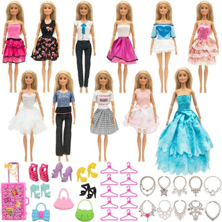 (131 Pcs) Doll Clothes Doll Barbie Accessories Dolls Set Barbie Doll Clothing Doll Closet Dolls Clothing & Accessories Sets Doll Jewelry Set Doll Shoes Barbie Clothes Doll Accessories Set for 28~29 cm