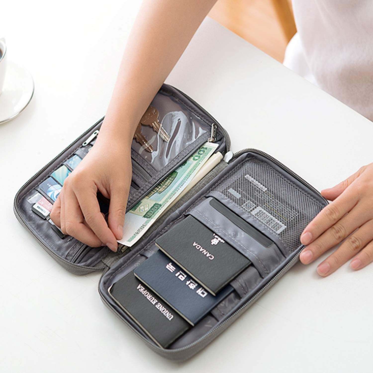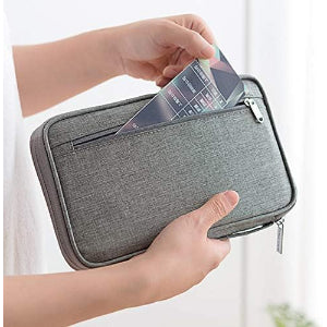 Multifunction Convenient and Practical Travel Wallet RFID Blocking Document Organizer Bag, Family Passport Holder, Grey, SSZ159