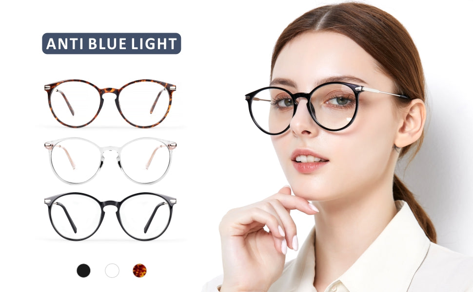 - 【𝗖𝗹𝗮𝘀𝘀𝗶𝗰 𝗮𝗻𝗱 𝗦𝘁𝘆𝗹𝗶𝘀𝗵 𝗗𝗲𝘀𝗶𝗴𝗻𝘀】 Blue light glasses round frame design is suitable for both males and females with all face types. Tortoiseshell,Black and Clear colors blue light glasses can meet your different needs and are perfect for your business and leisure.