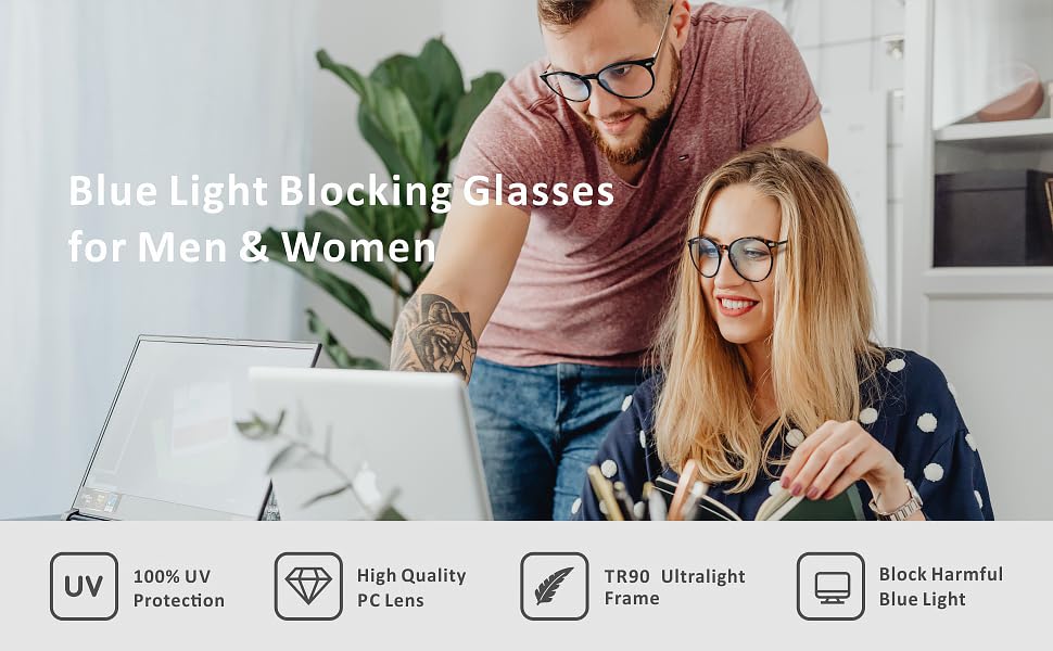 - 【𝗟𝗶𝗴𝗵𝘁𝘄𝗲𝗶𝗴𝗵𝘁 & 𝗖𝗼𝗺𝗳𝗼𝗿𝘁𝗮𝗯𝗹𝗲】:The frame of these blue light glasses are made from TR90 material. It's ultra- lightweight and flexible for long-term wearing without fatigue. Stylish design is suitable for men and women.