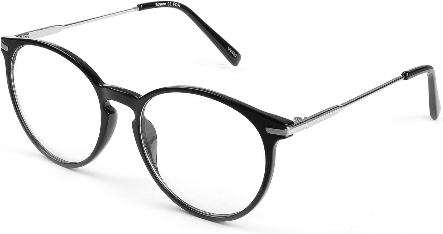 Baytion Blue Light Blocking Glasses - Computer Game Glasses Retro Round Eyeglasses Frame for Women Men, Anti Eye Eyestrain UV 400 Protection Reading Gaming Glasses Non Prescription, Black
