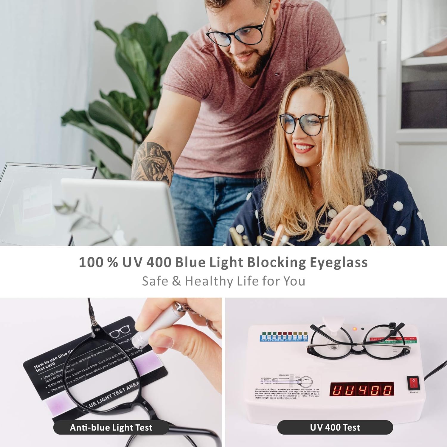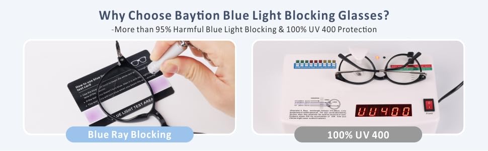 - 【𝗙𝗶𝗹𝘁𝗲𝗿 𝗛𝗮𝗿𝗺𝗳𝘂𝗹 𝗕𝗹𝘂𝗲 𝗟𝗶𝗴𝗵𝘁】:The blue light blocking lens can prevent blue light from irritating the eyes which can effectively 100% block ultraviolet radiation and radiation and filter blue light.Protect your eyesight and reduce glare during long hours of fluorescent light work.