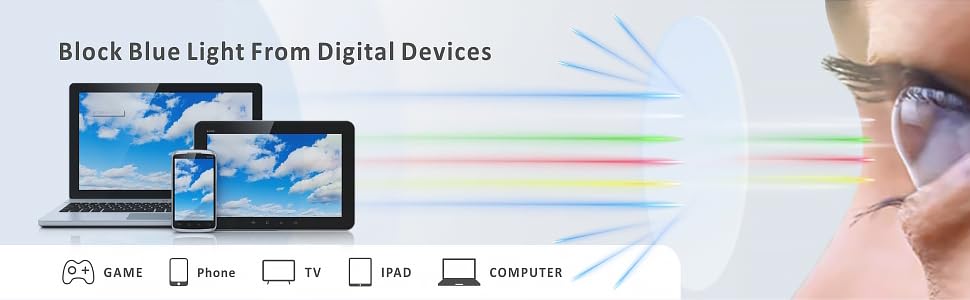 - 【𝗘𝗹𝗶𝗺𝗶𝗻𝗮𝘁𝗲 𝗙𝗮𝘁𝗶𝗴𝘂𝗲】: Blue light blocker protects your vision from alleviating visual fatigue and discomfort from long periods of web surfing, gaming and working. Reduce glare, fatigue, headache, eye strain and dry eye and help sleep better.