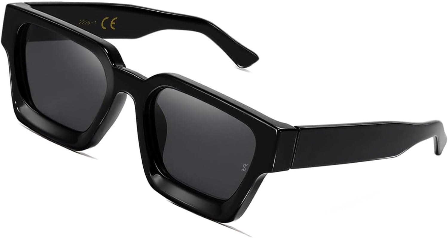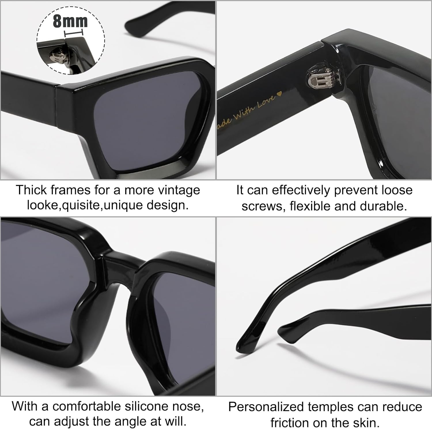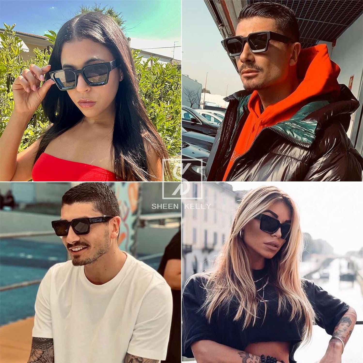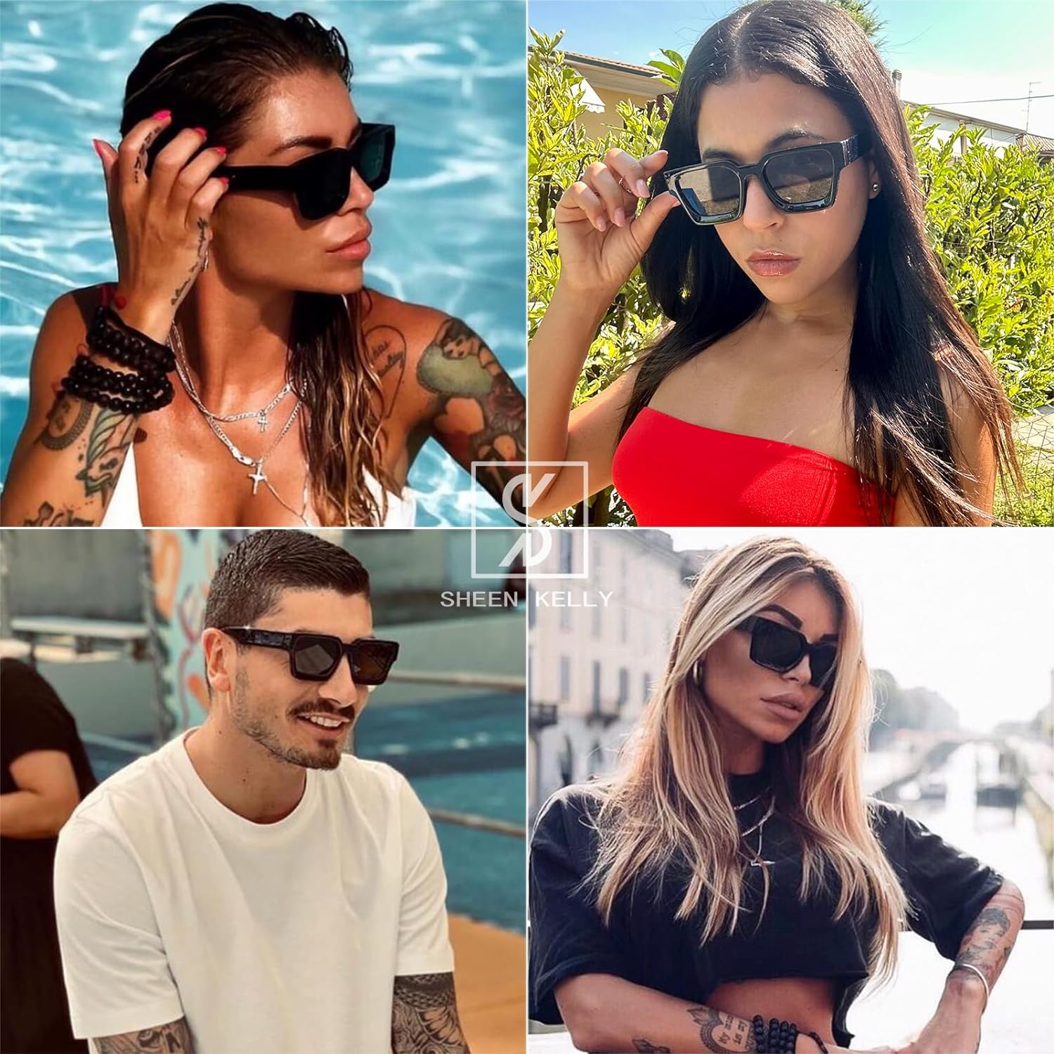 SHEEN KELLY Retro Rectangular Sunglasses Men Women Polarization Trendy Classic Thick Square Black 90s Sunglasses